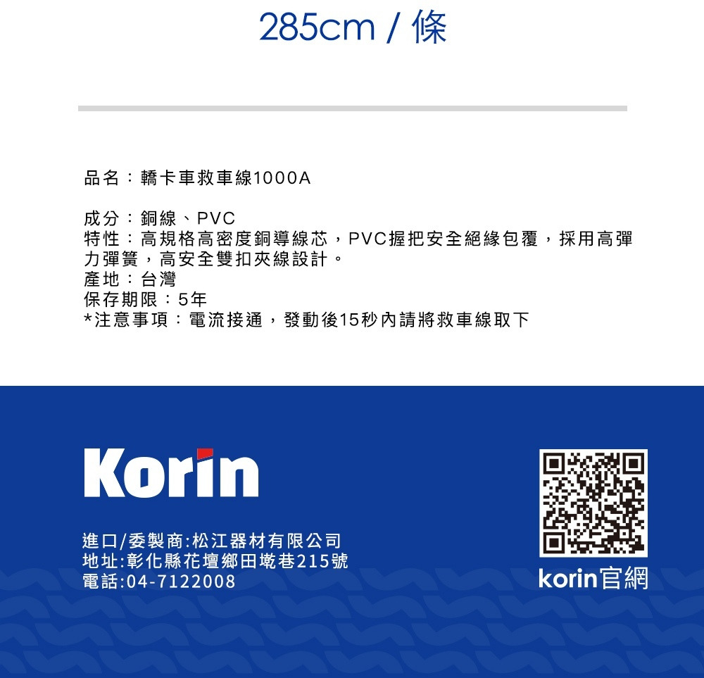 注意事項:電流接通,發動後15秒內請將救車線取下