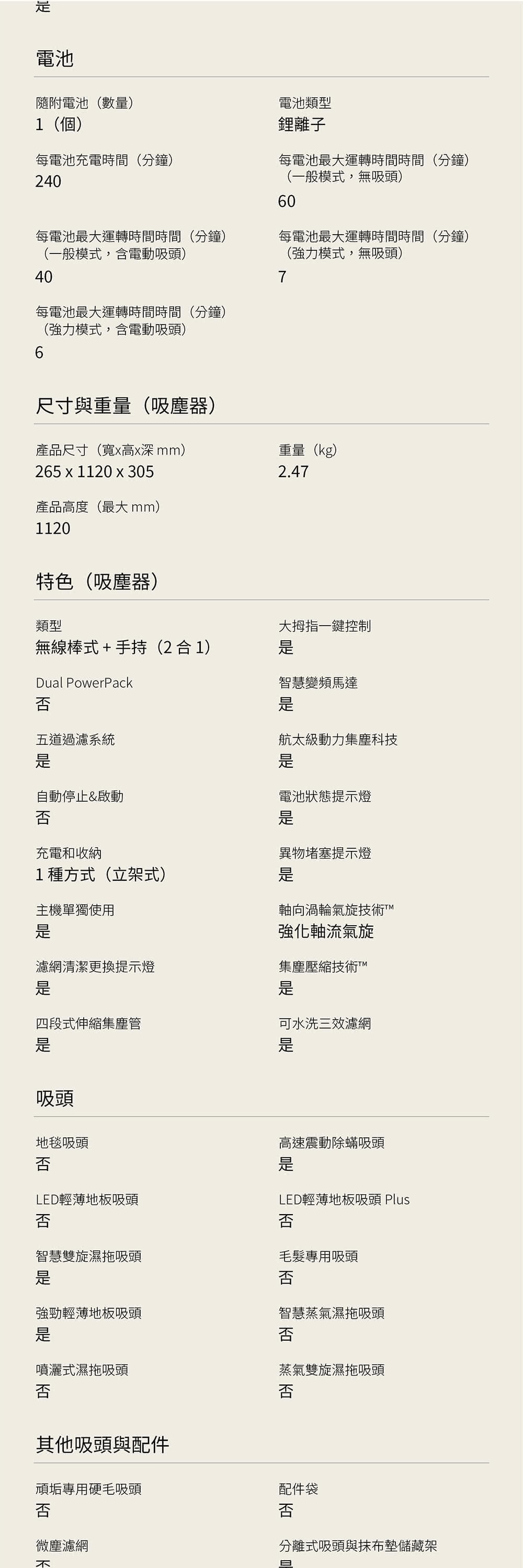 產品尺寸 (W x H x D):265 x 1120 x 305 mm