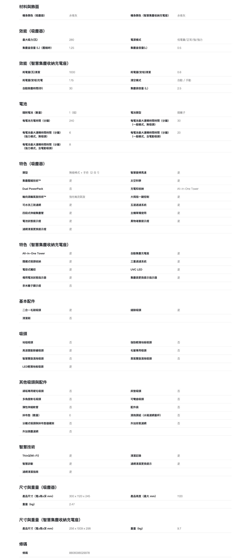 產品尺寸 (W x H x D):300 x 1009 x 298 mm
