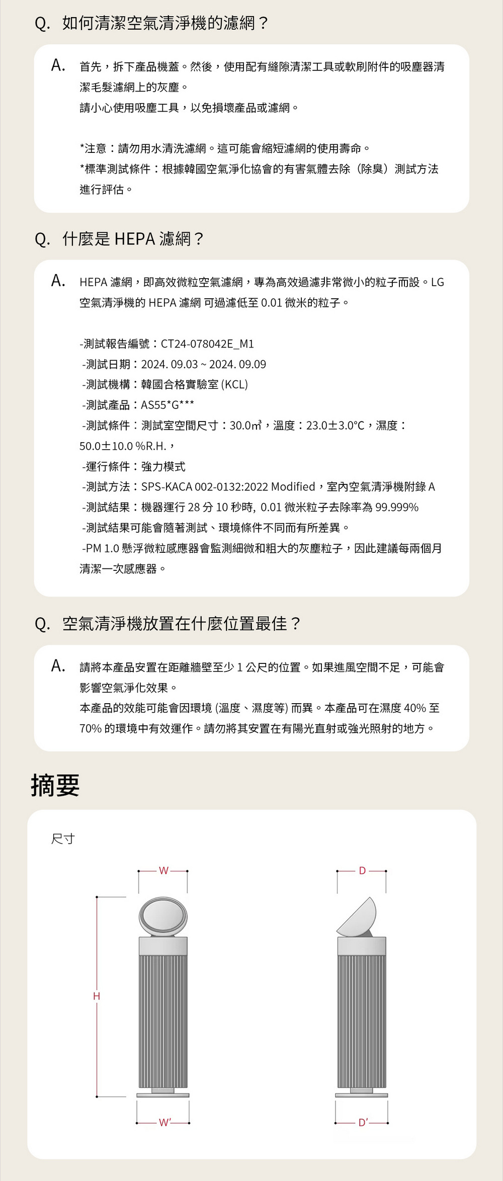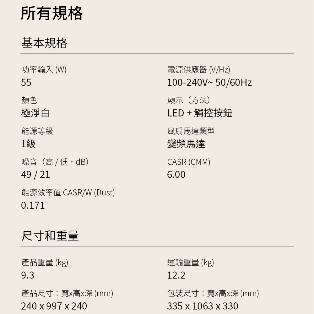產品尺寸 (W x H x D):240 x 997 x 240mm