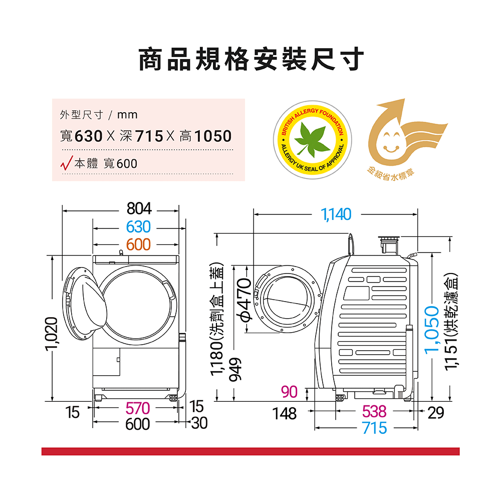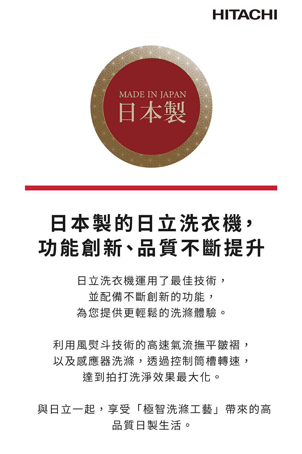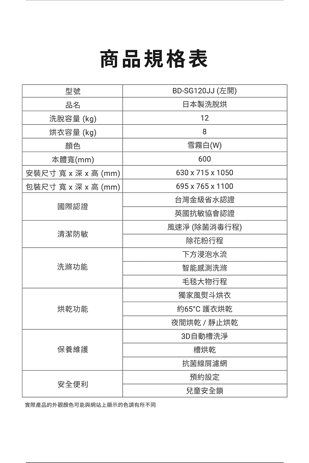 品名:HITACHI 日立 日製智能感測變頻左開滾筒洗脫烘洗衣機 雪霧白白 12公斤
