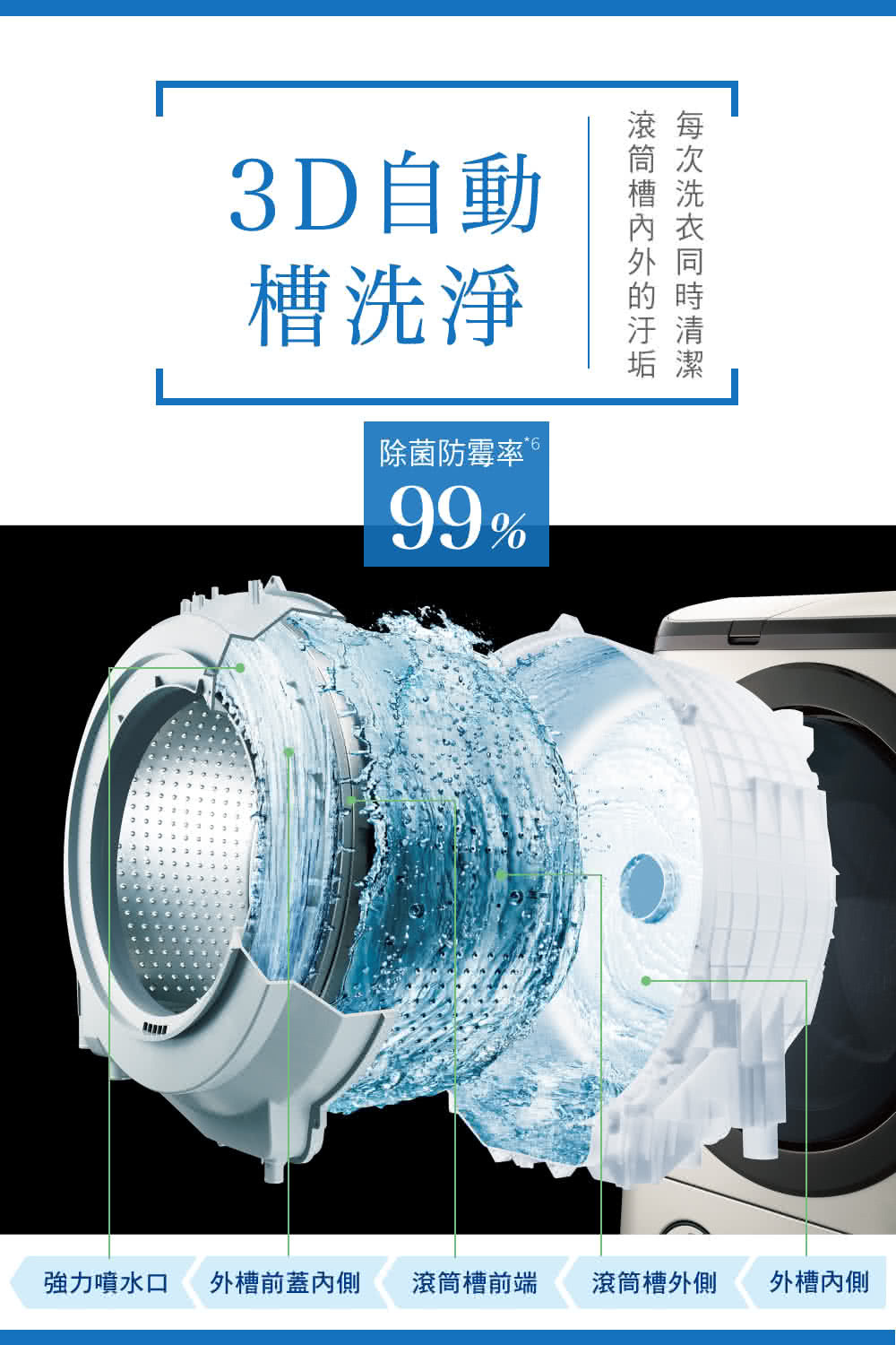 ●溫水噴霧+尼加拉飛瀑洗淨 預防衣物泛黃
