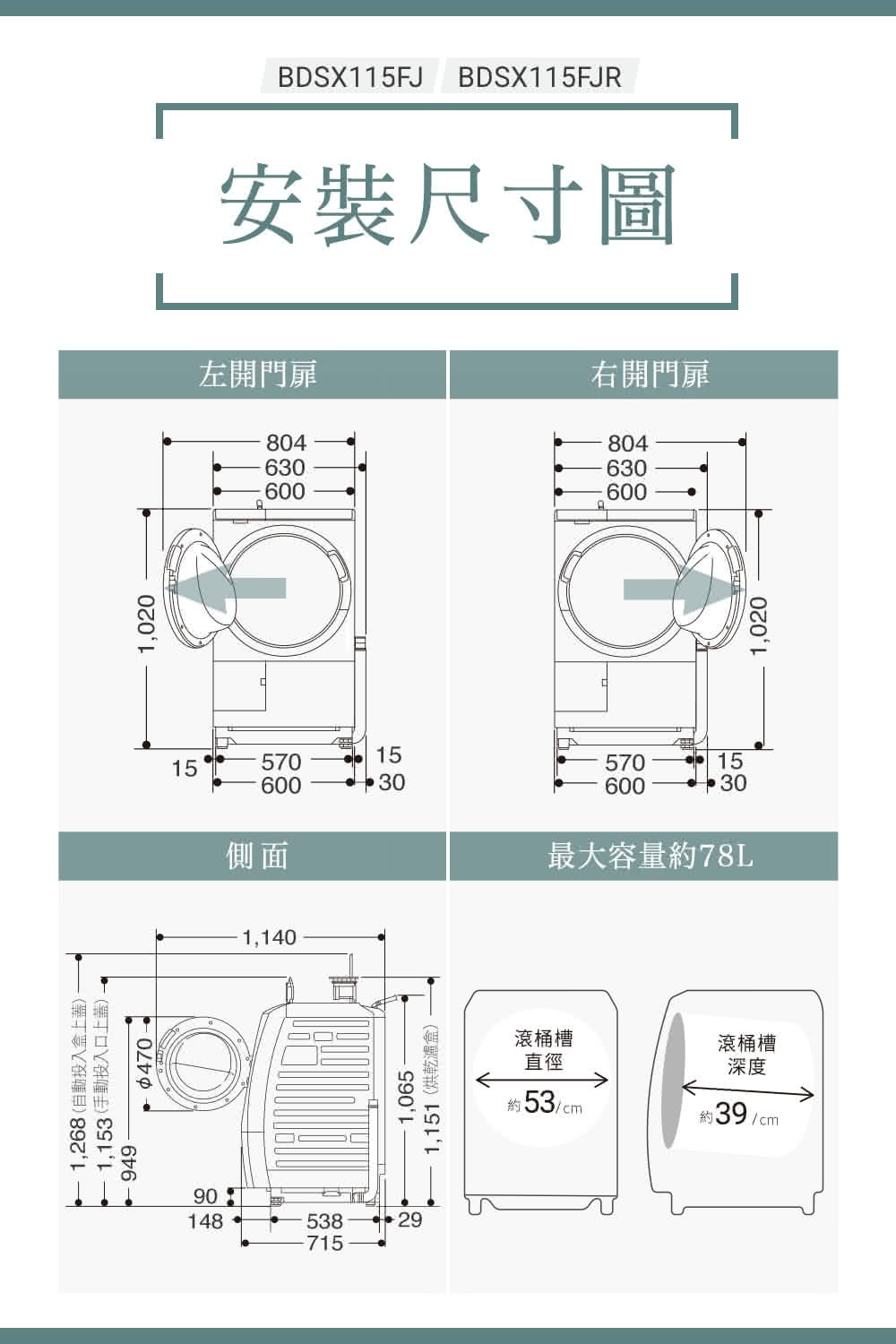 HITACHI 日立 日製智能感測變頻左開滾筒洗脫烘洗衣機 珍珠白 11.5公斤|BDSX115FJ-N