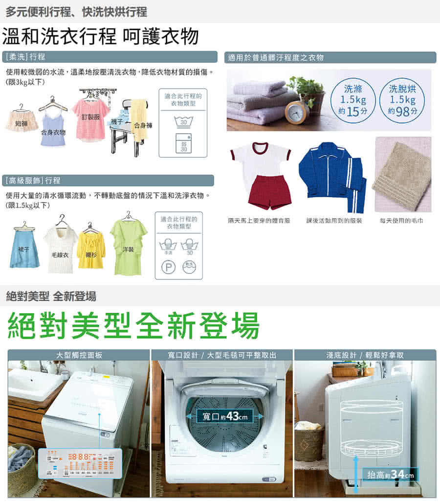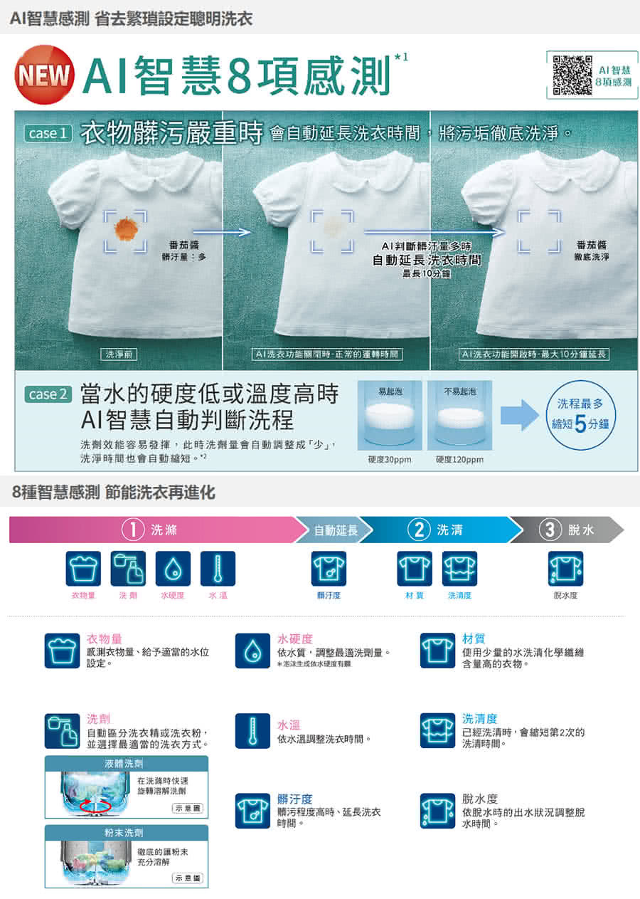 ●AI智慧8項感測 省去繁瑣設定聰明洗衣