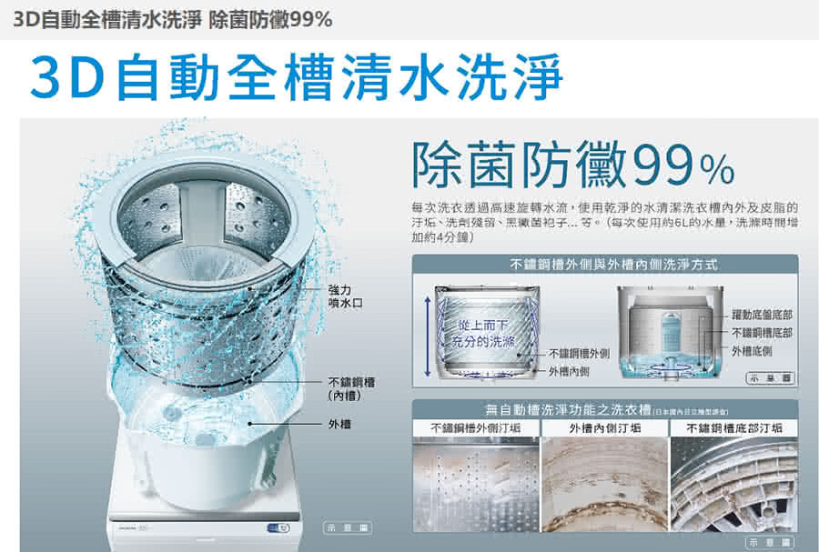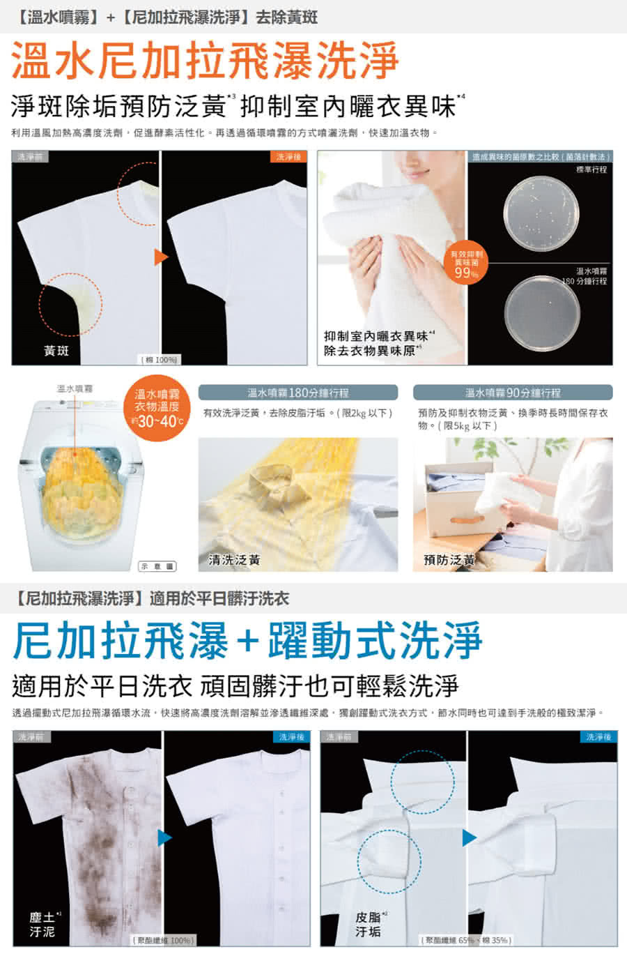 ●溫水噴霧+尼加拉飛瀑洗淨 預防衣物泛黃