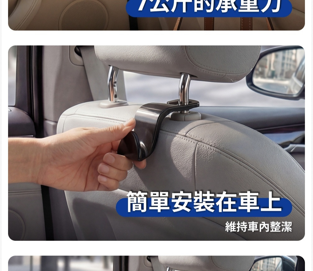 實用又方便的車內收納神器!車用輕便掛勾可快速安裝於頭枕桿上,輕鬆掛放購物袋、背包、飲料或外套,讓物品不再滾落座椅。採用輕巧耐用設計,小巧不占空間,隨掛隨用。雙入組更實惠,可分別安裝於駕駛與副駕座椅後方,保持車內整潔、便利又安全。