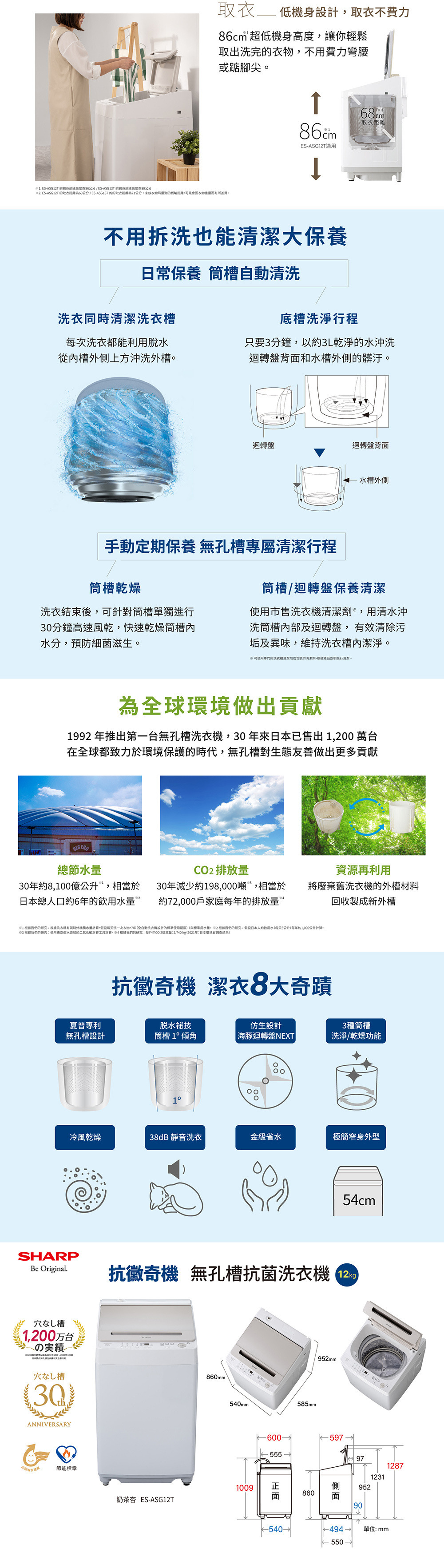 SHARP 夏普 無孔槽變頻洗衣機-奶茶杏 12公斤|ES-ASG12T