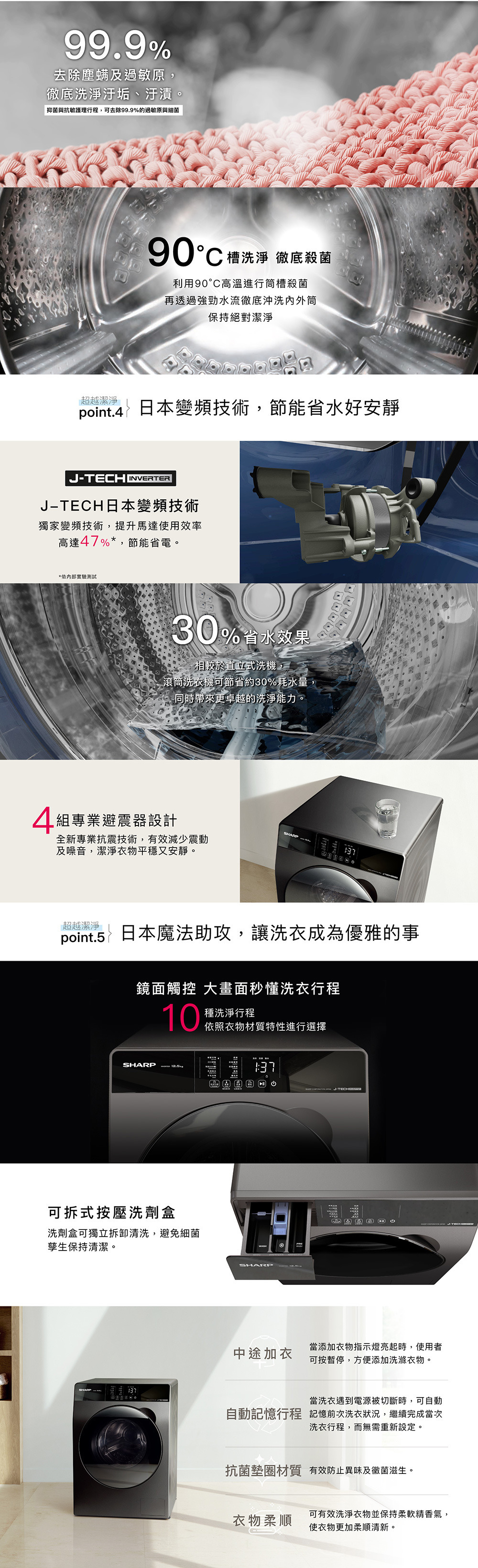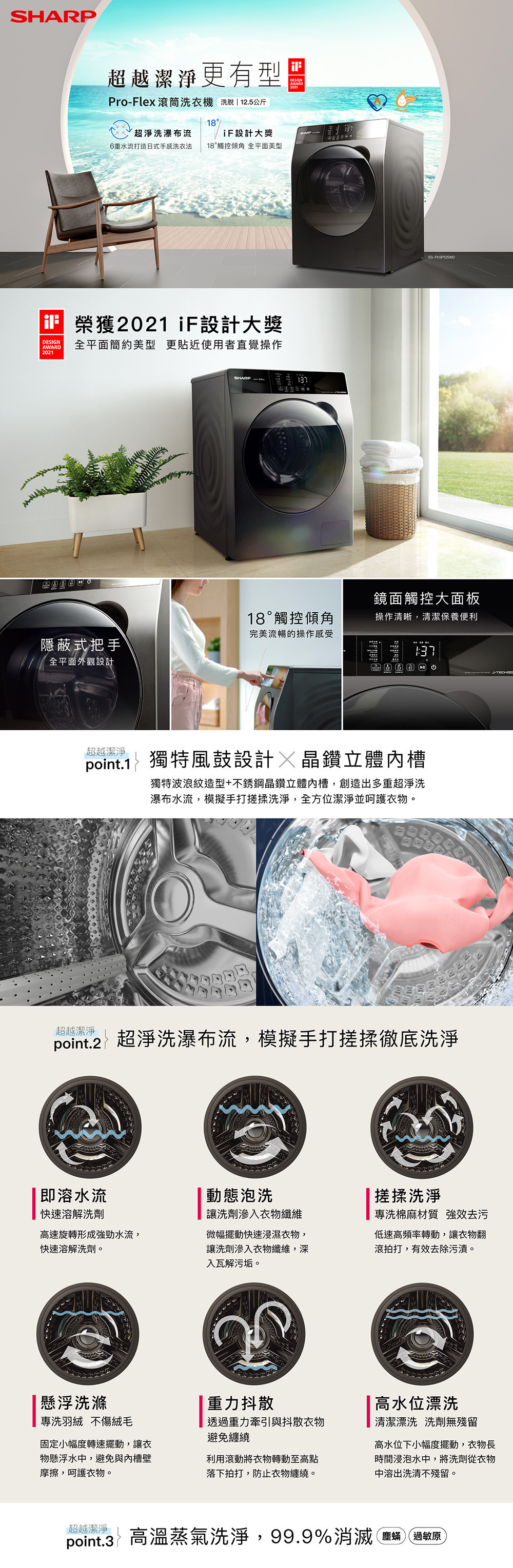 品名:SHARP 夏普 Pro-Flex 變頻滾筒洗衣機-尊爵灰 12.5公斤