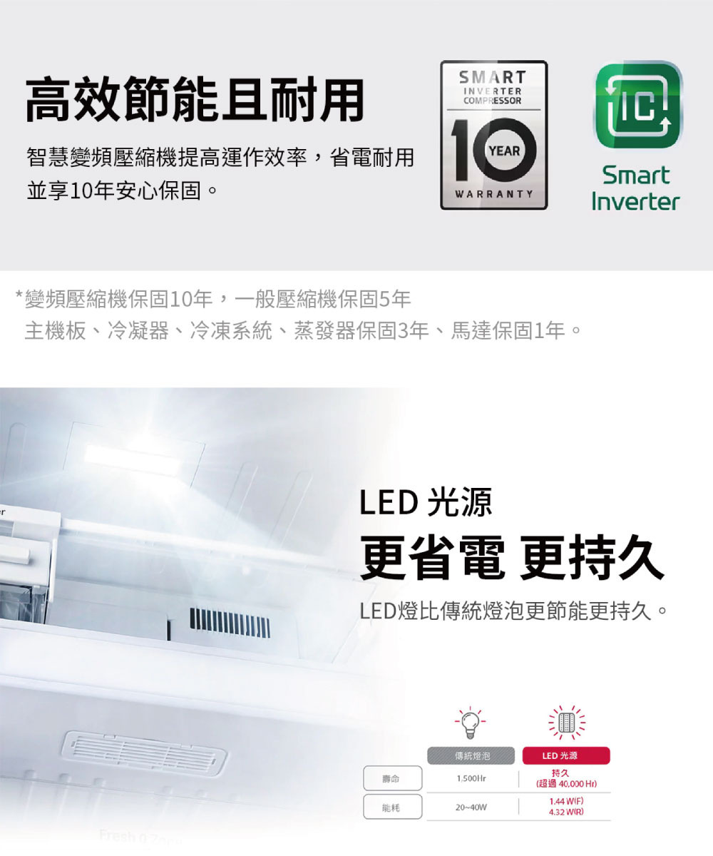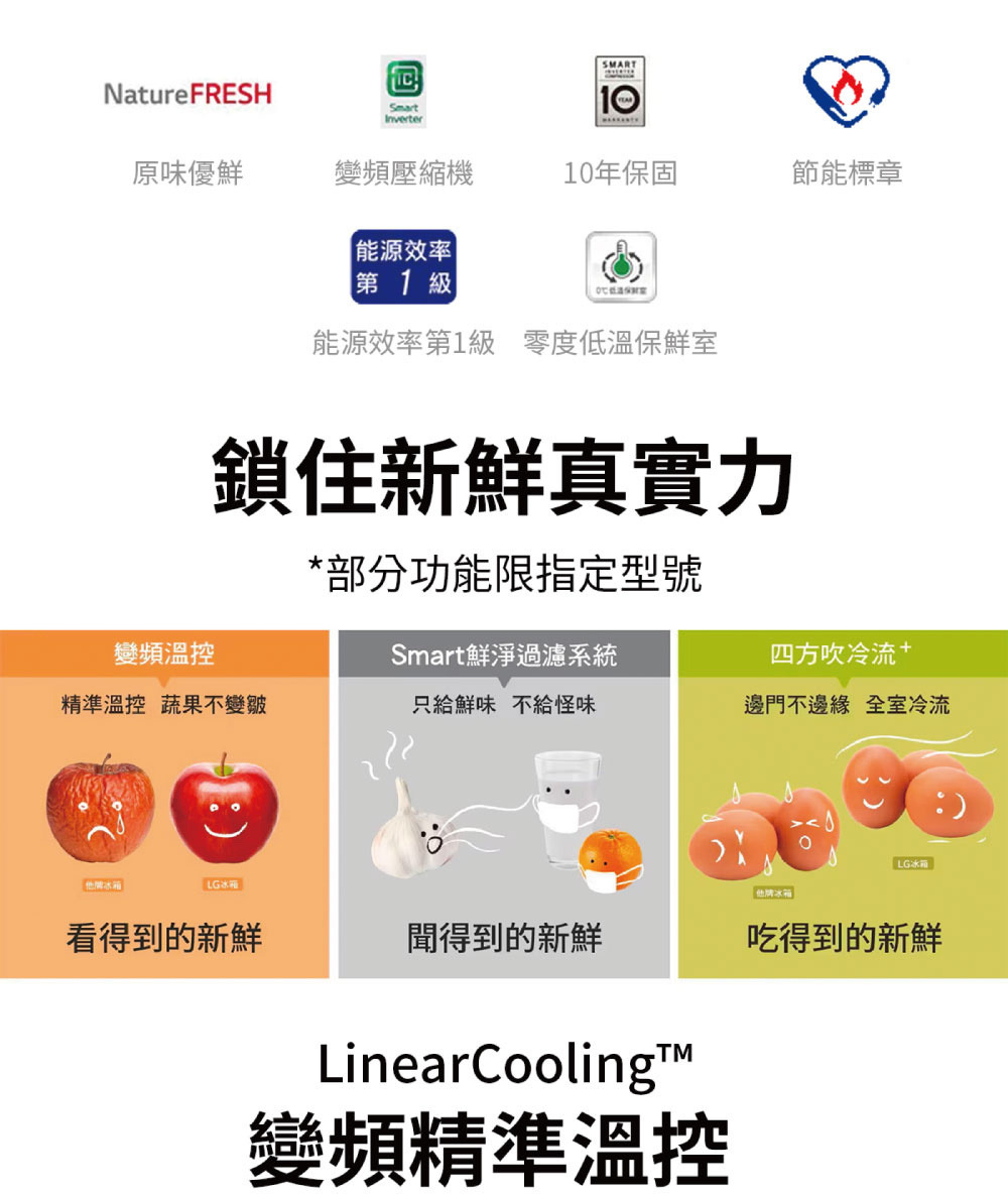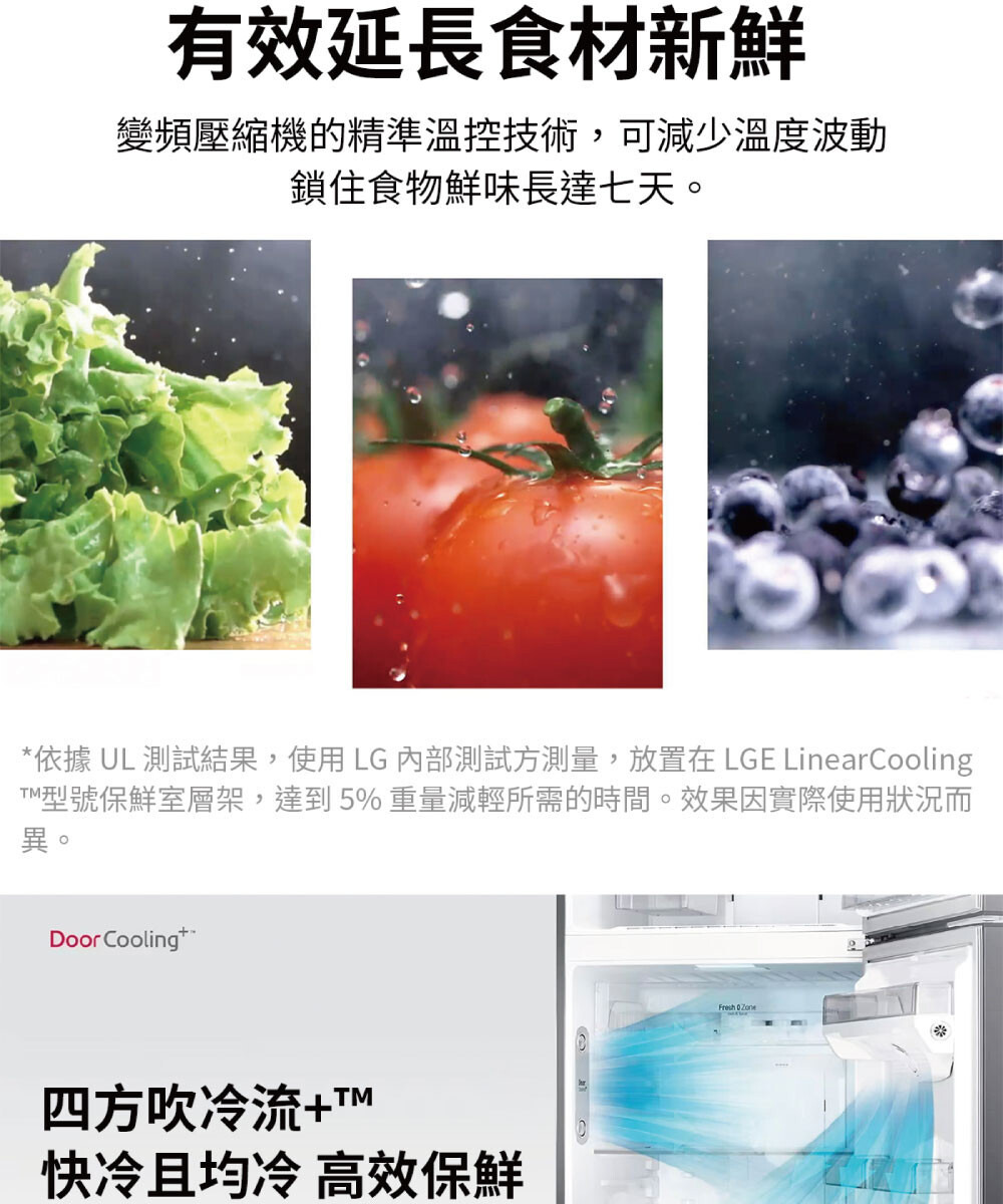 ●變頻壓縮機精準溫控,延長 7 天保鮮