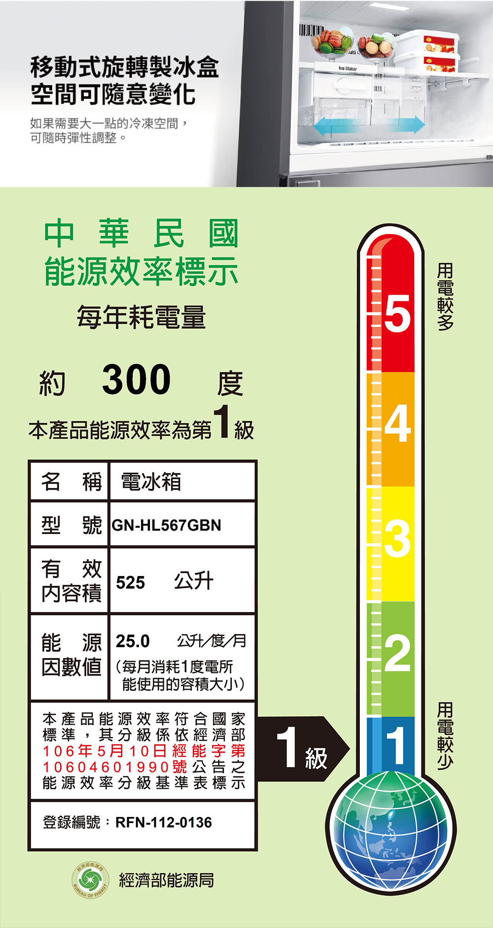 ●可拆式移動旋轉製冰盒,空間靈活運用