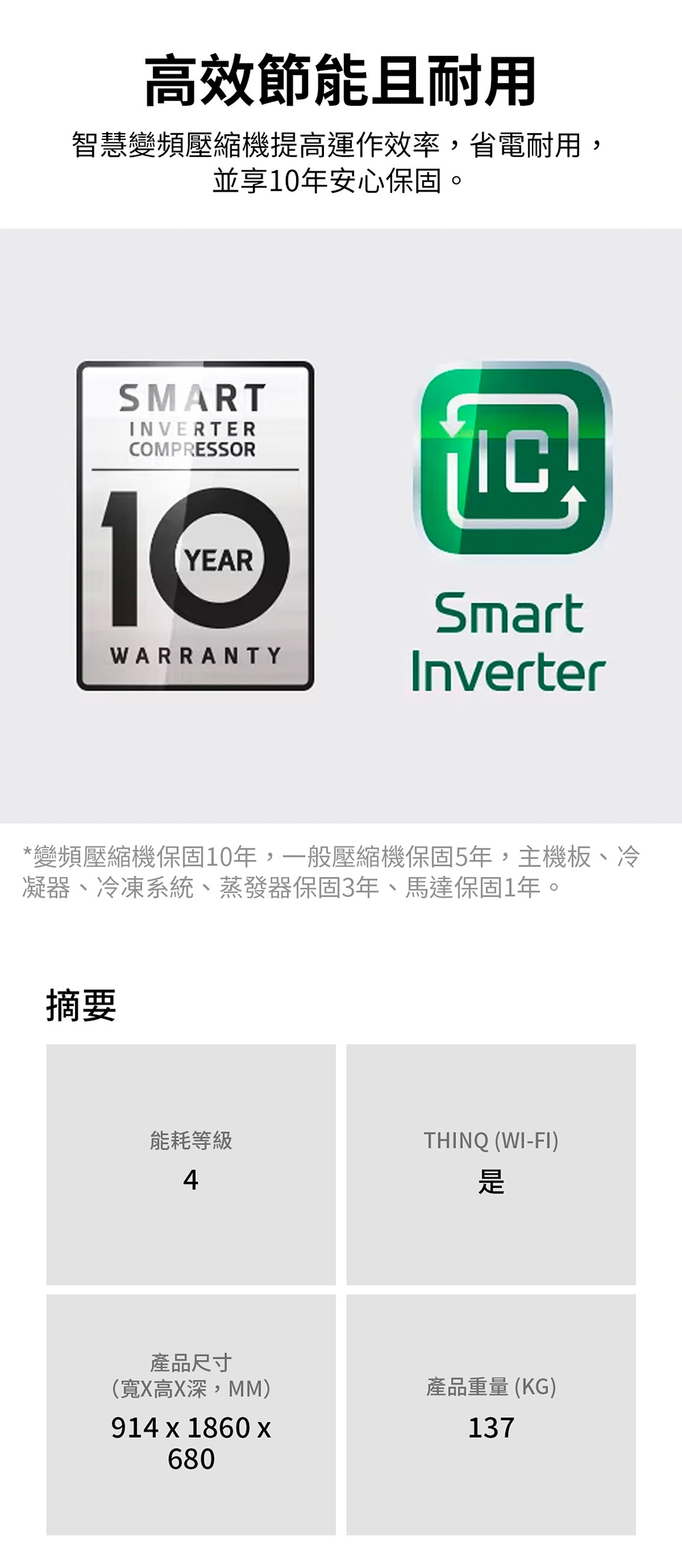 品名:LG 變頻對開冰箱-雪霧白 610公升