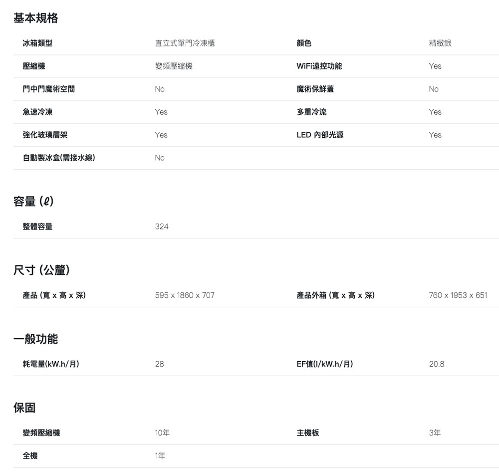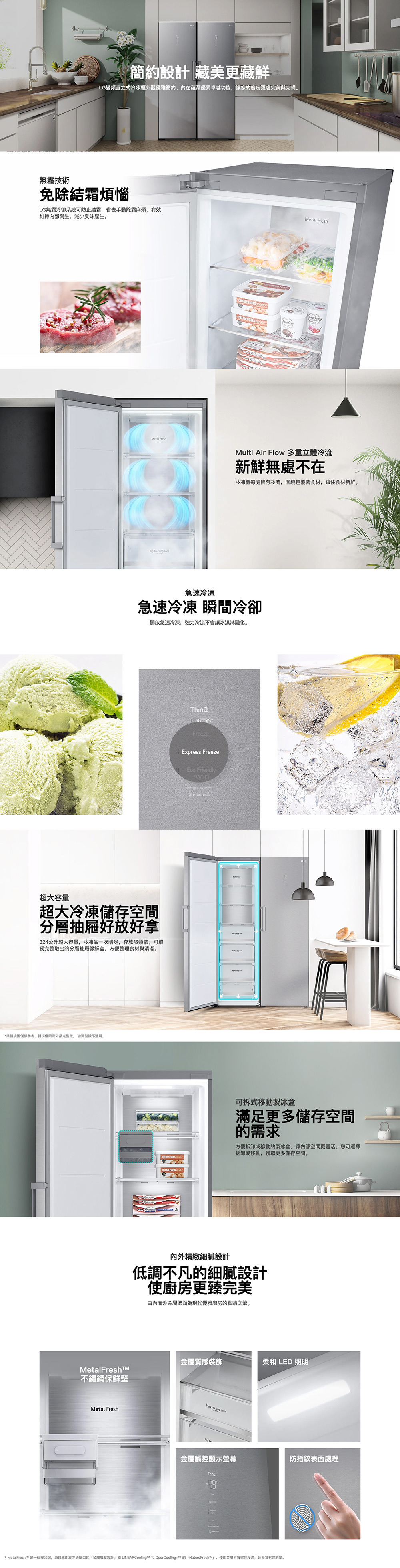 品名:LG WiFi變頻直立式由右至左開冷凍櫃-精緻銀 324公升