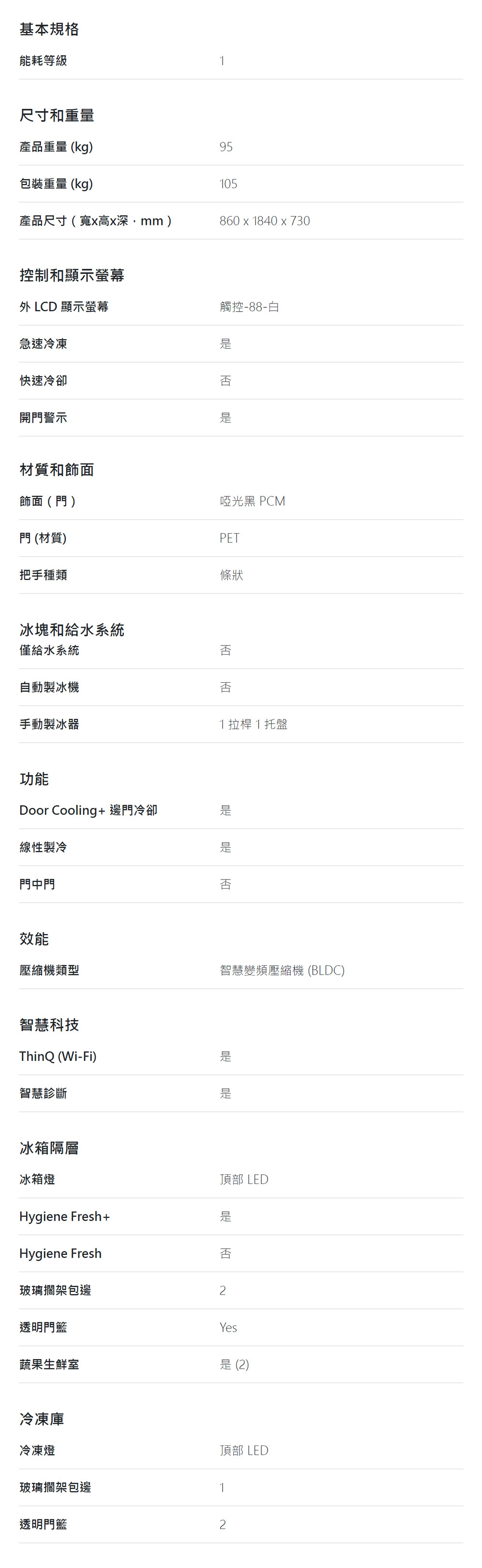 產品尺寸:860x1840x730 mm (WxHxD)