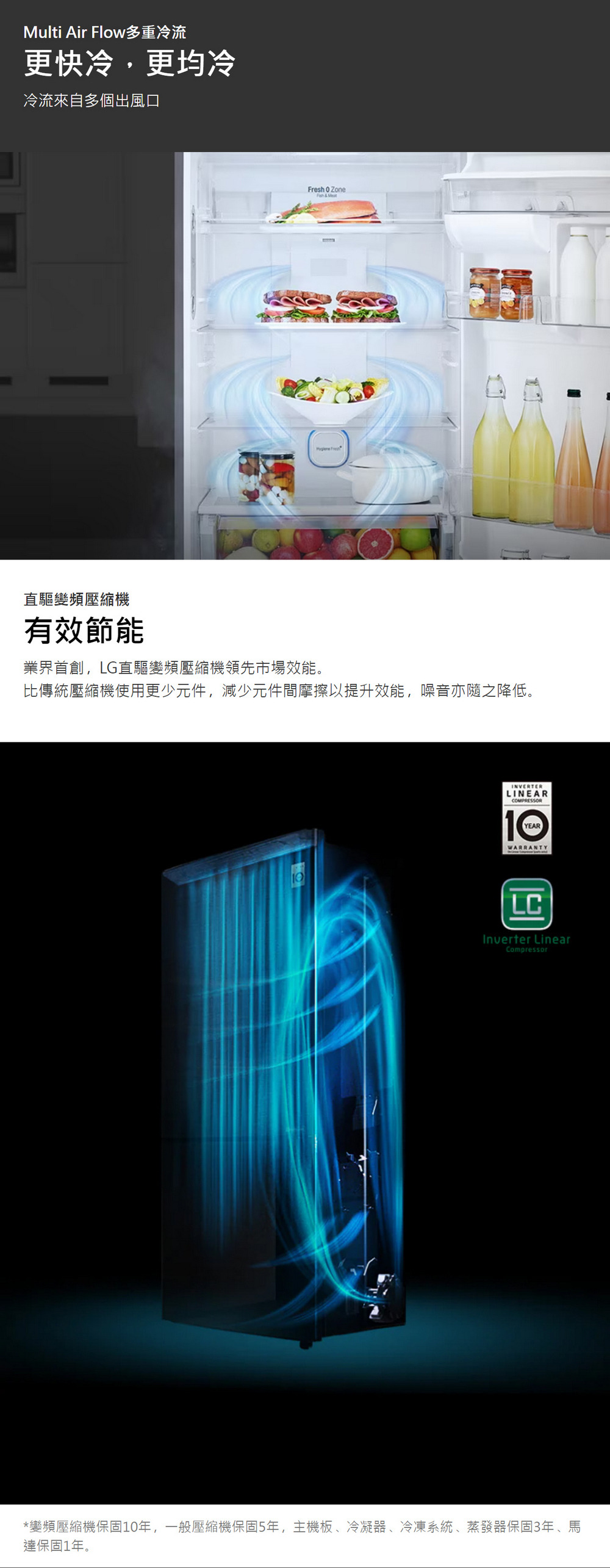 ●變頻壓縮機,更安靜更省電,享10年保固