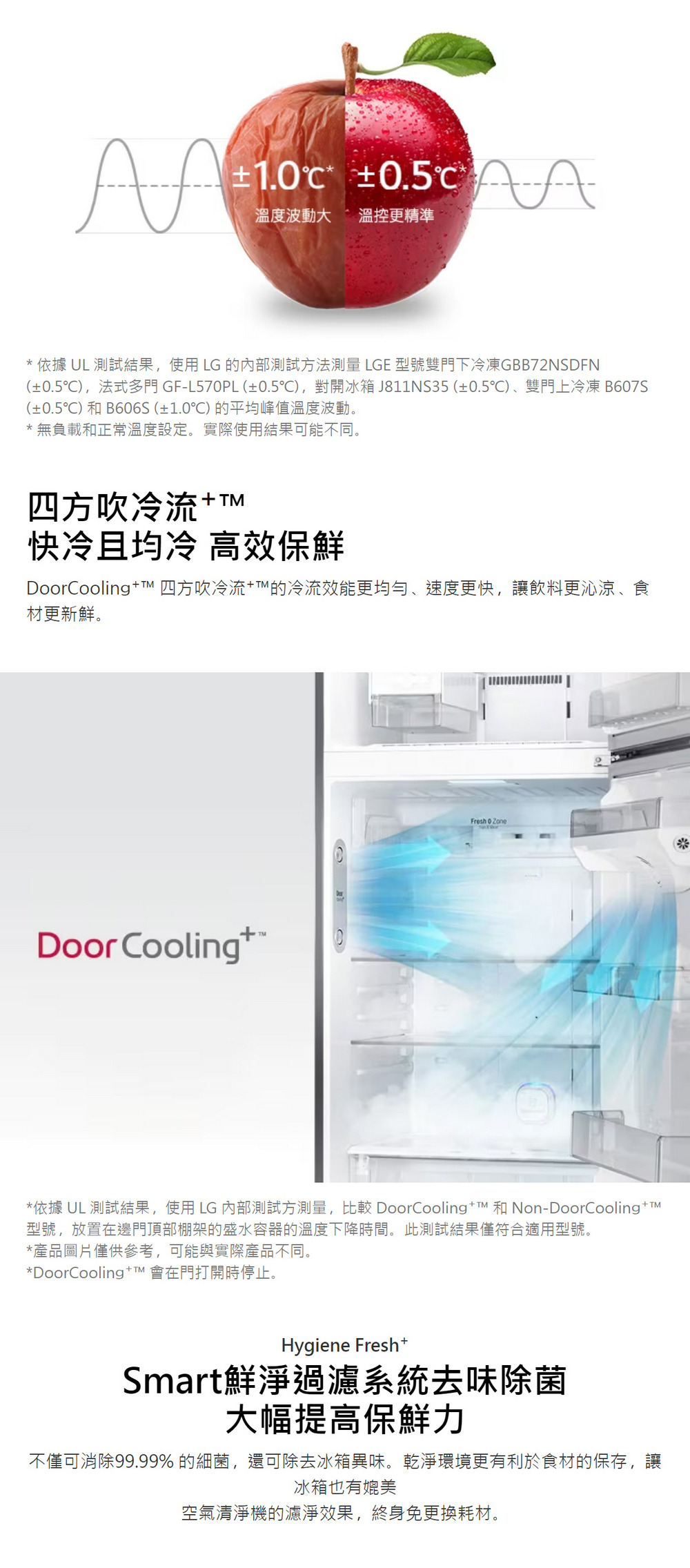 ●鮮淨過濾系統,INTERTEK認證殺菌99.9%,有效去味除菌