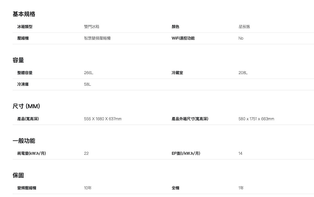 ●冷凍58/冷藏208公升
