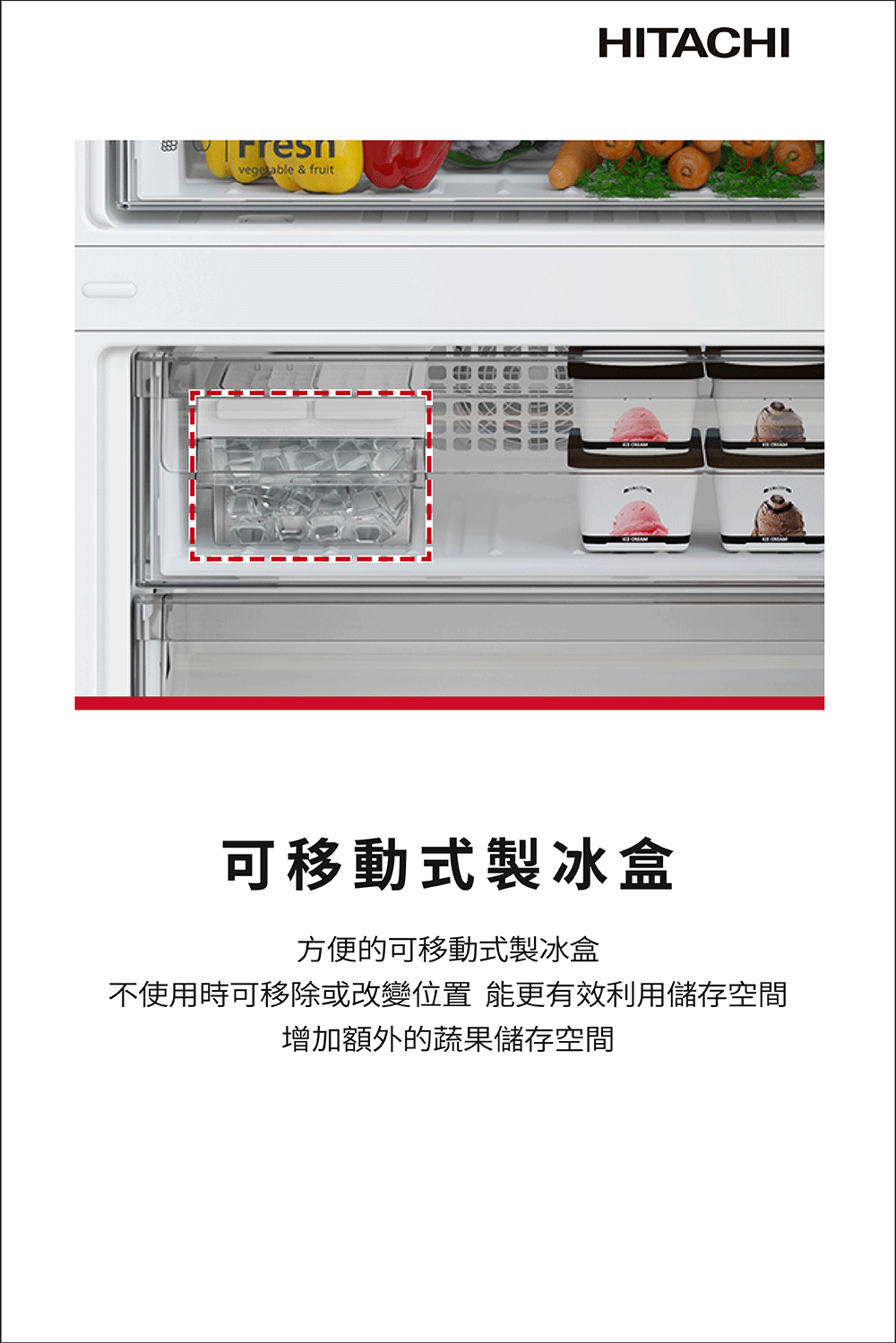 ●可移動式製冰盒 有效利用儲存空間