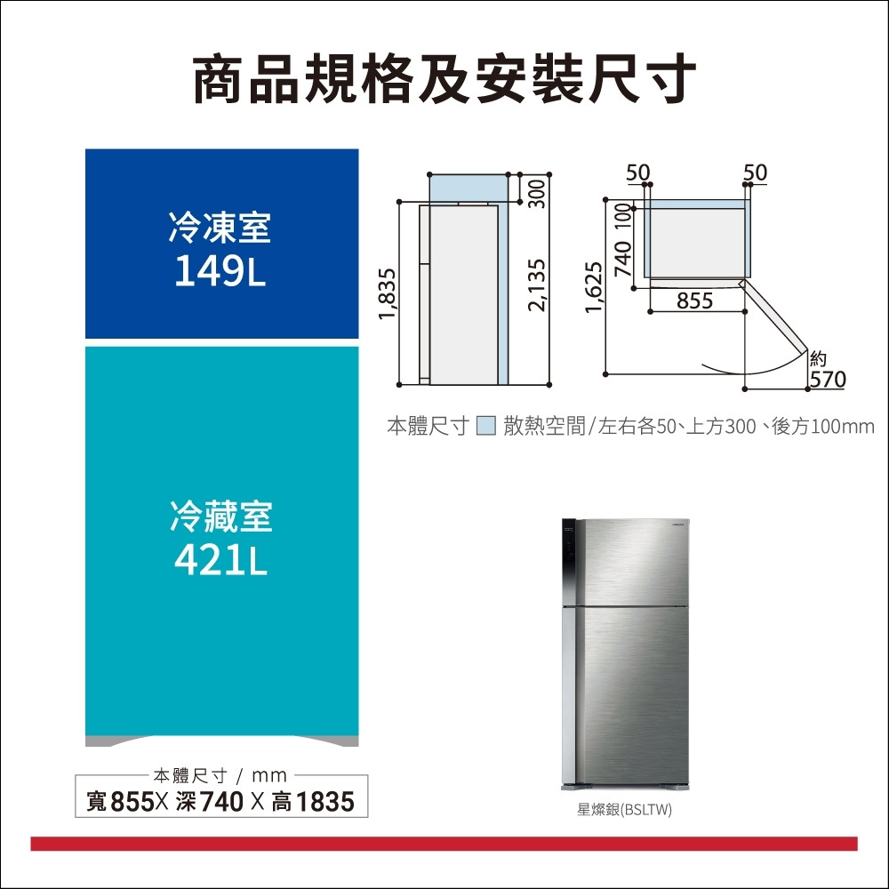 品名:HITACHI日立 變頻雙門右開冰箱-星燦銀 570公升