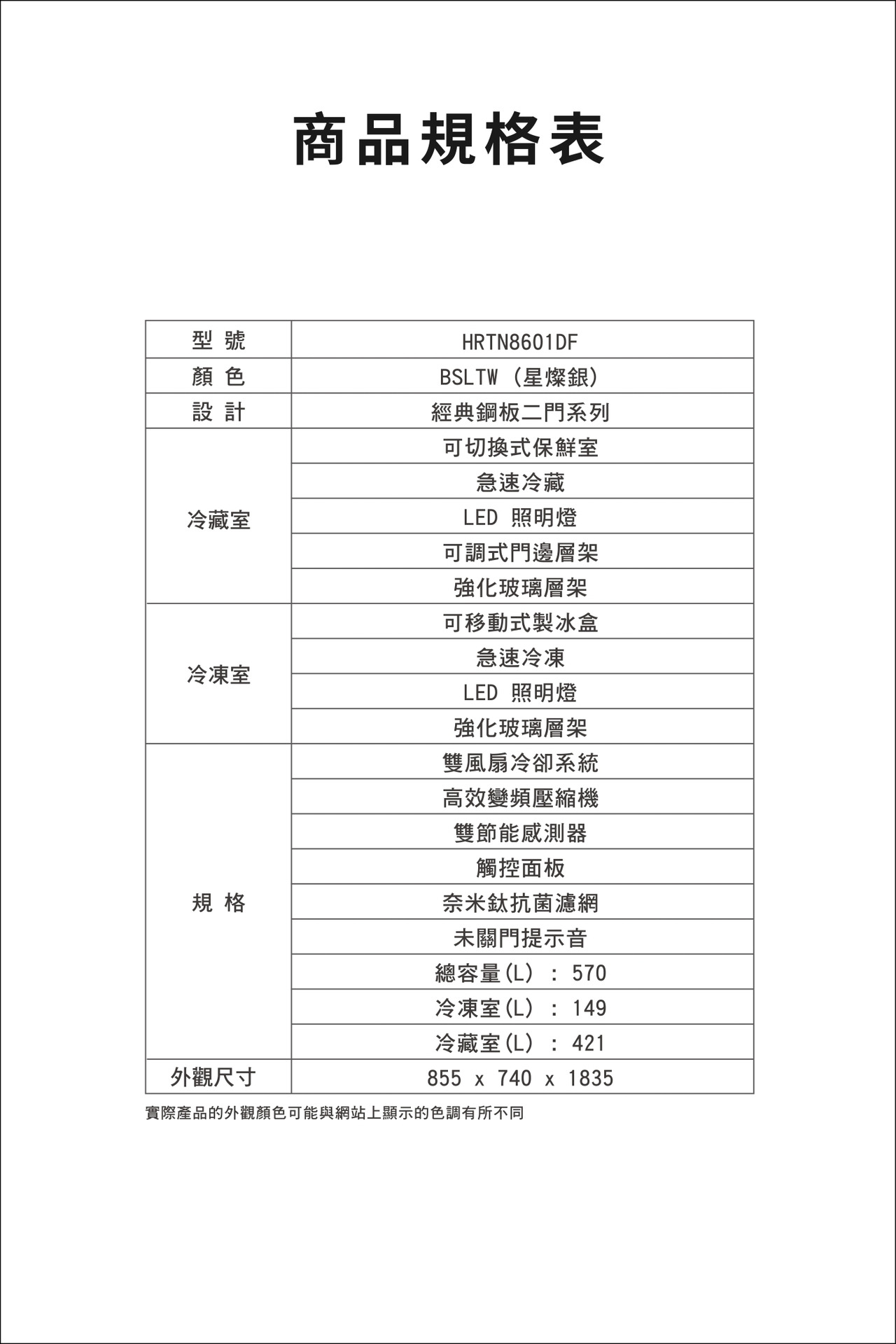 型號:HRTN8601DF-BSLTW