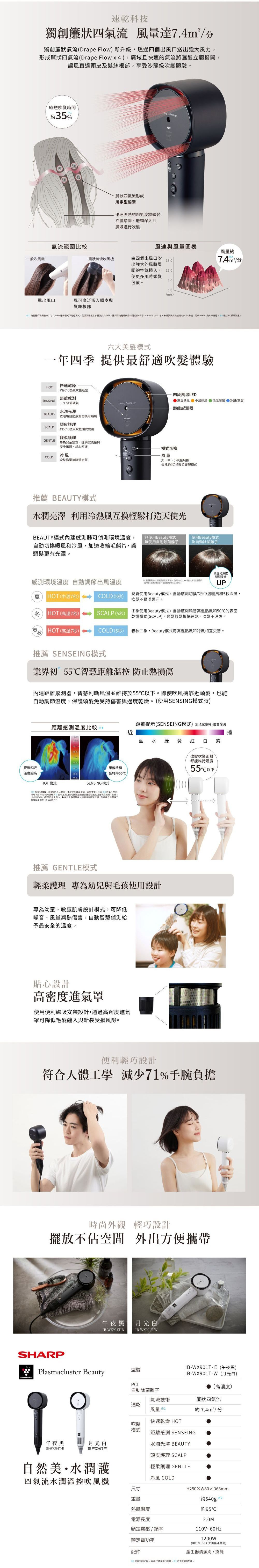 SHARP夏普 四氣流水潤溫控吹風機-月光白| IB-WX901T-W