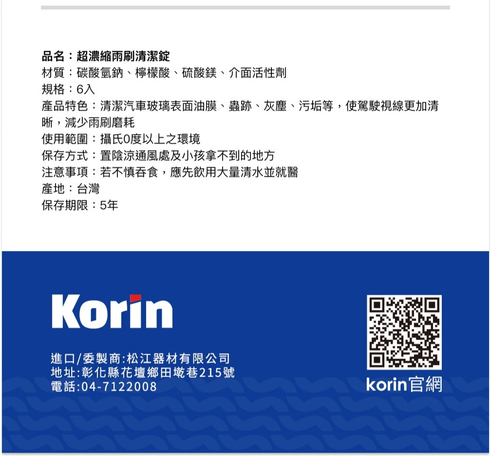 品名:KORIN超濃縮雨刷清潔錠