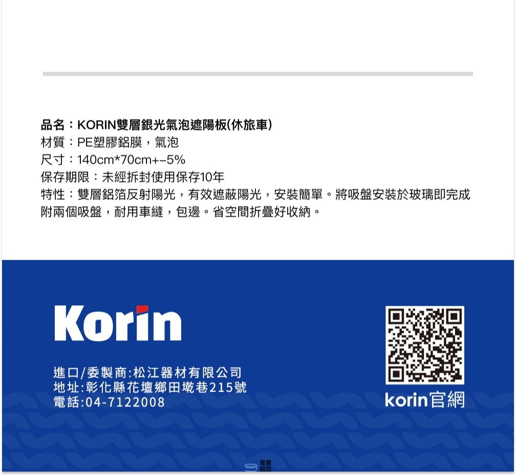 品名:Korin雙層銀光氣泡遮陽板-休旅車