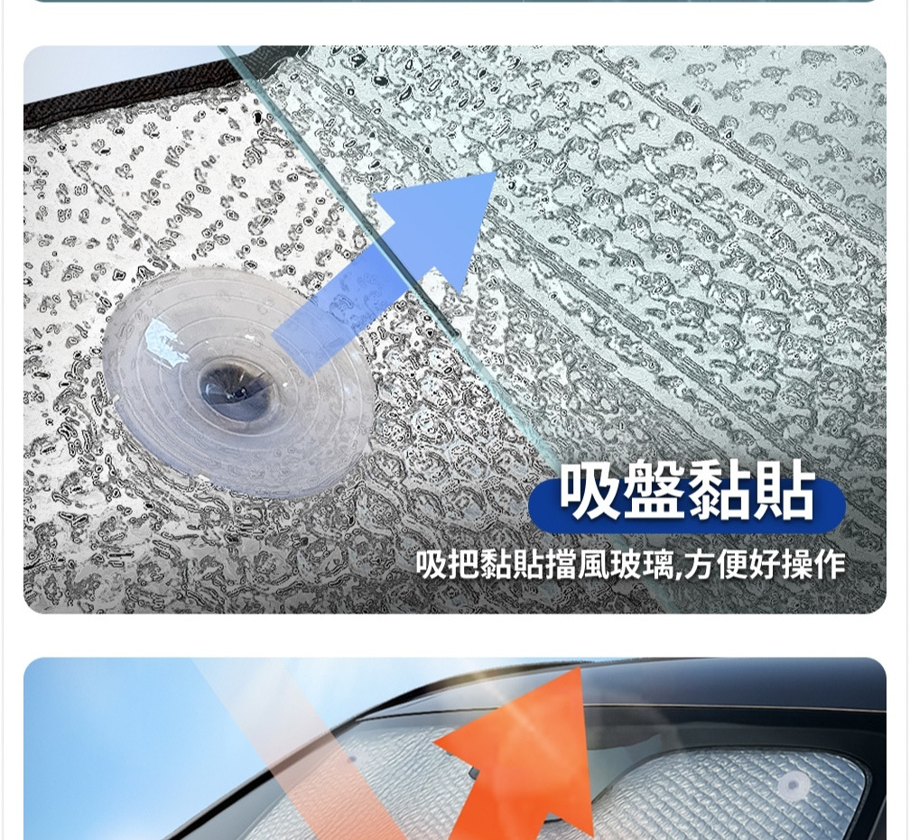 將遮陽板展開後固定於前擋風玻璃內側,使用吸盤或置於擋風玻璃與座椅縫隙間即可。使用後摺疊收納於車內空間,方便下次使用。