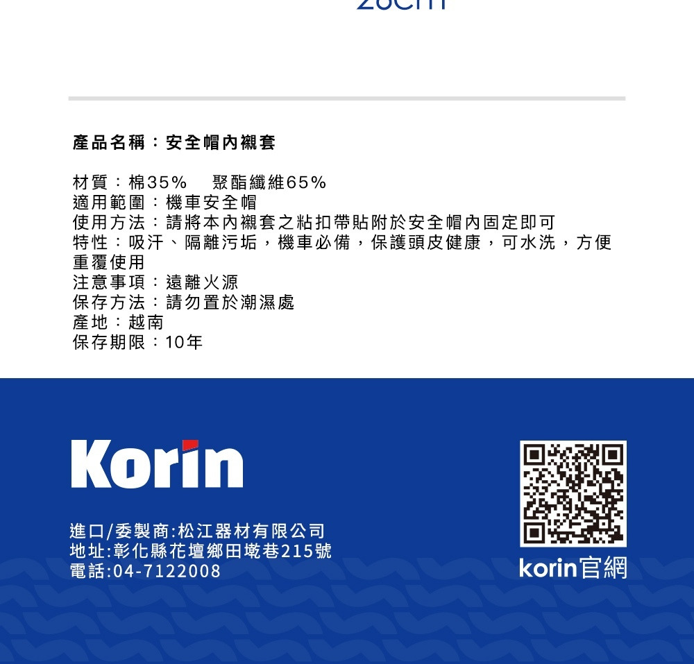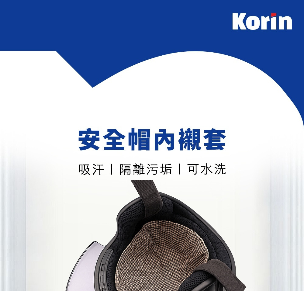 保持安全帽內部乾淨舒適,提升騎乘體驗!【Korin】安全帽內襯套採用高透氣吸汗材質,可有效吸收汗水與油脂,避免安全帽內襯受潮、異味累積。可拆卸清洗設計,簡單維護衛生,延長安全帽使用壽命。兼具輕盈與柔軟,貼合頭型,提升長時間騎乘舒適度。