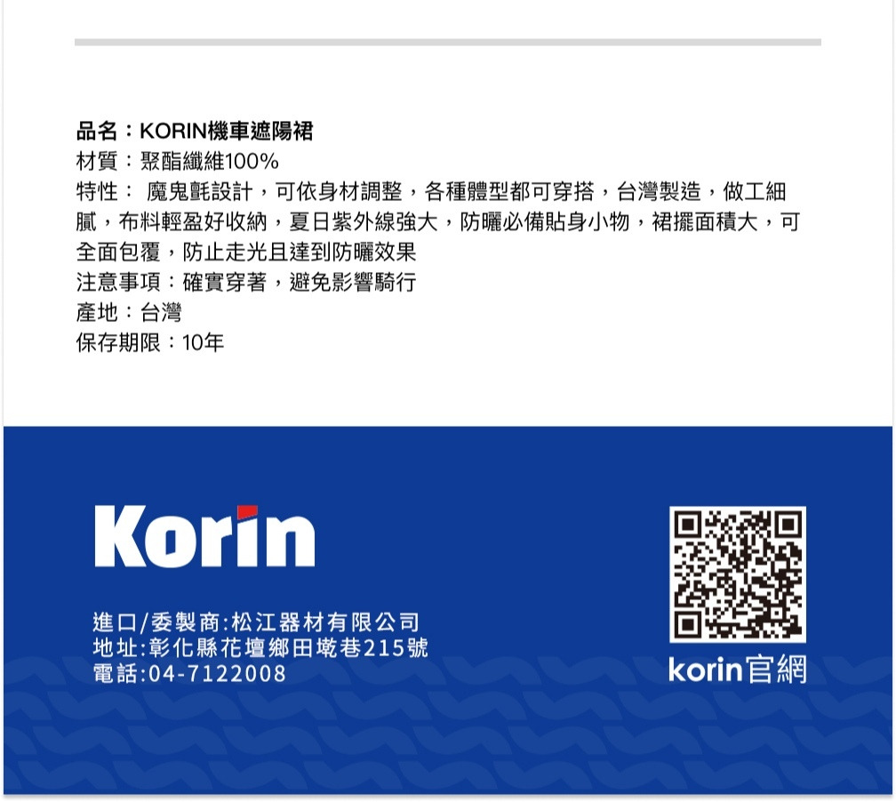 品名:KORIN機車遮陽裙