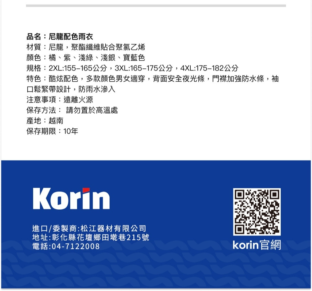 品名:尼龍配色雨衣
