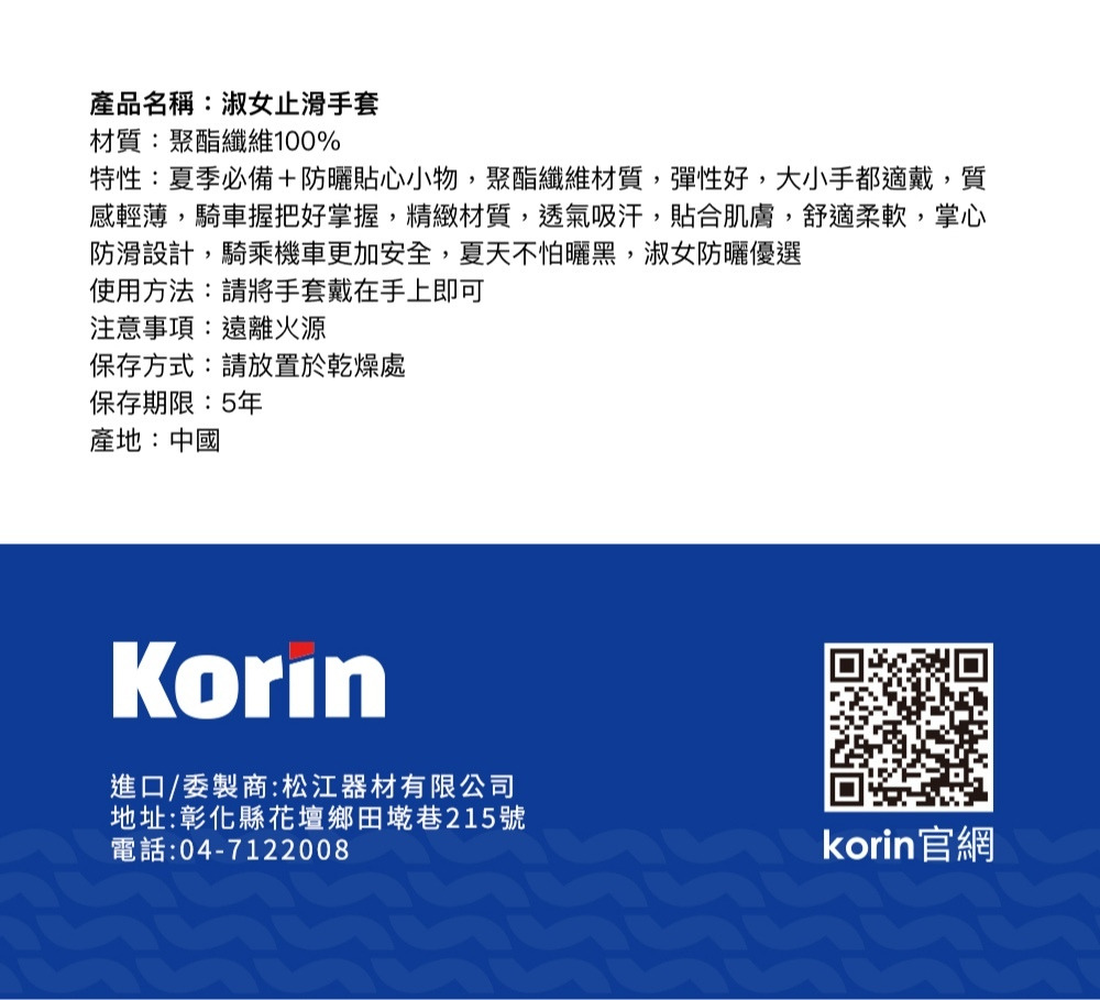 產品名稱:淑女止滑手套