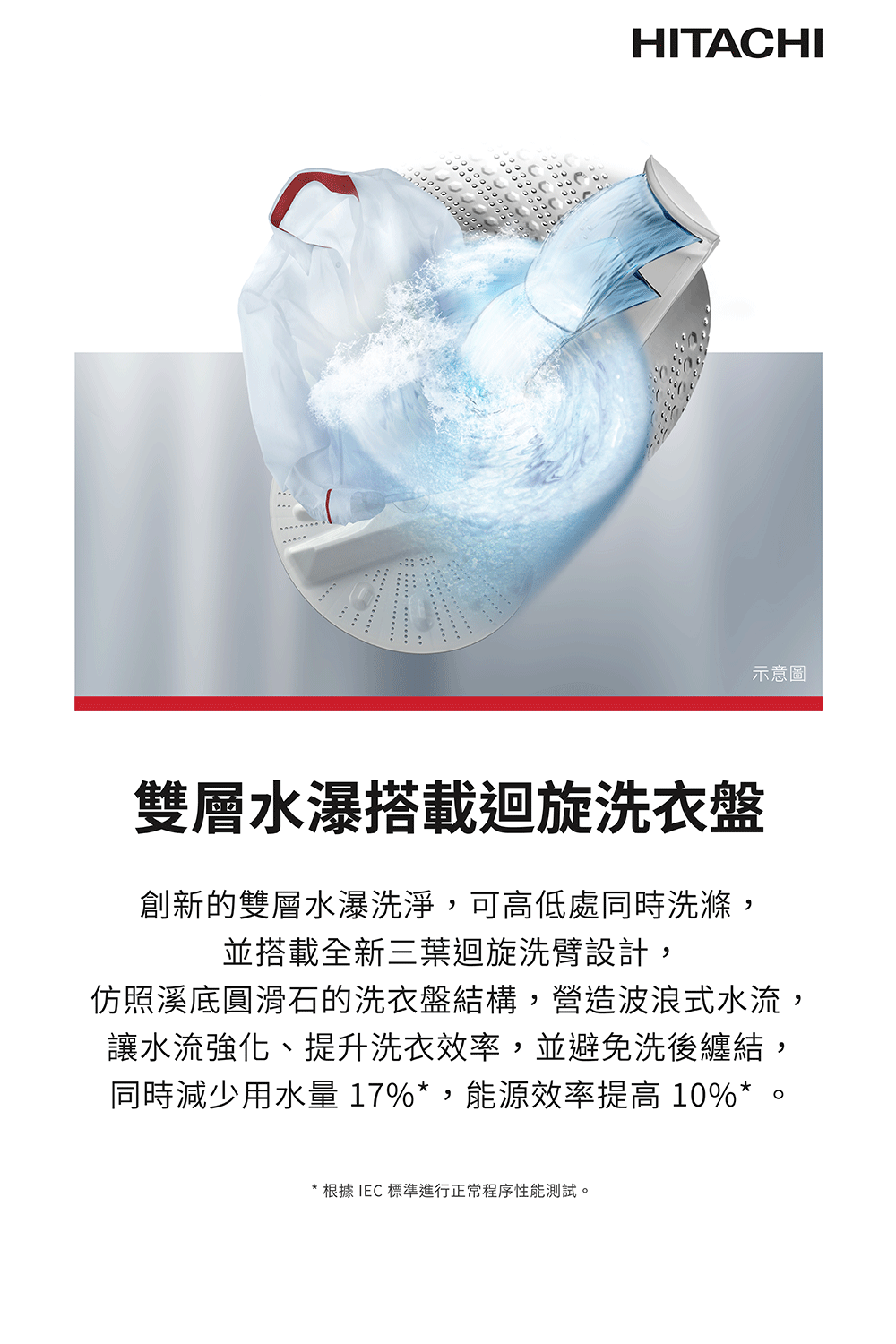 ●雙層水瀑搭載迴旋洗衣盤