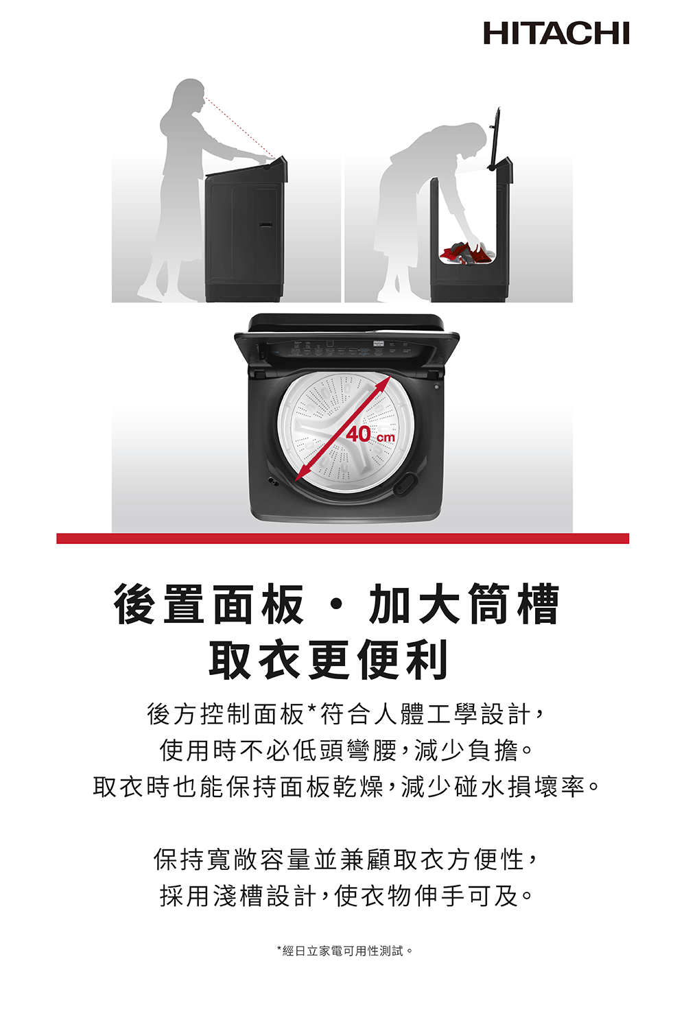 ●易控後置式面板及加大筒槽輕鬆拿取