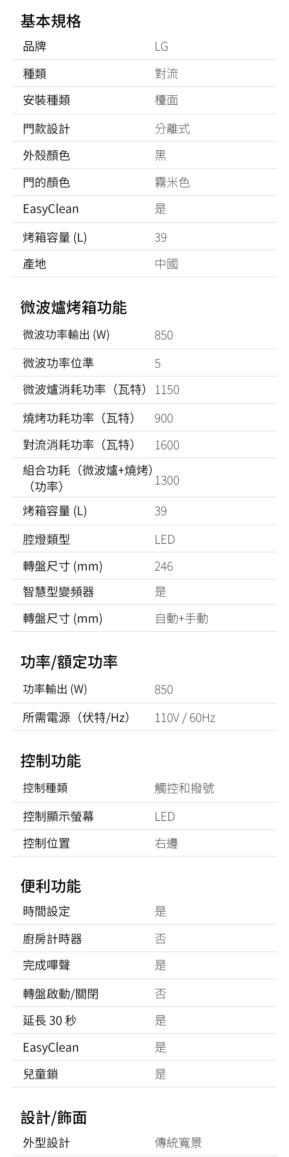 所需電源:110V / 60Hz