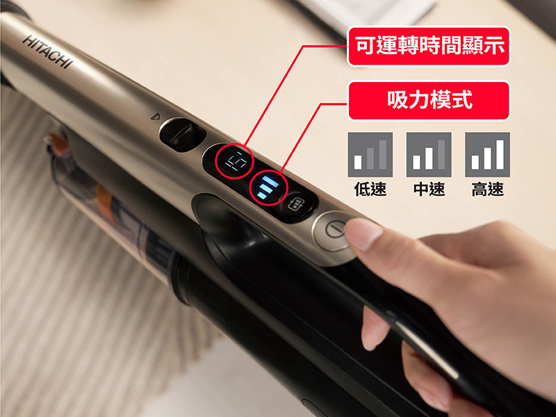 透過數位面板顯示,輕鬆掌握電池電量、吸力模式。