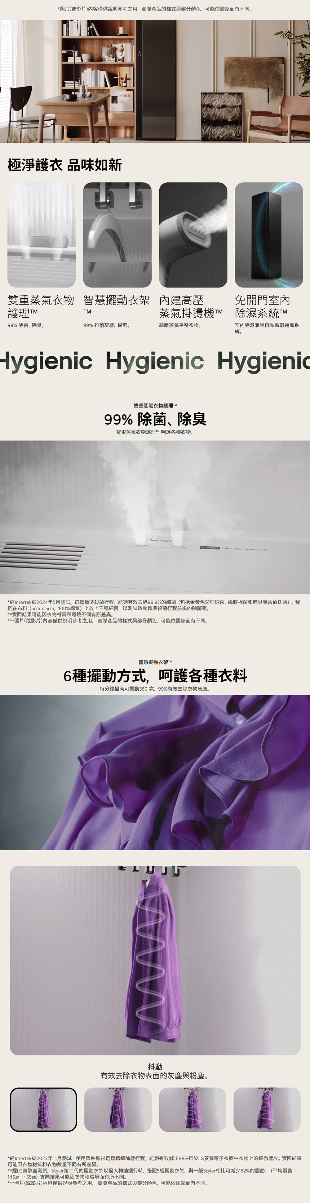 ●AI 偵測:智慧擺動衣架 抖落灰塵同時呵護各種衣料