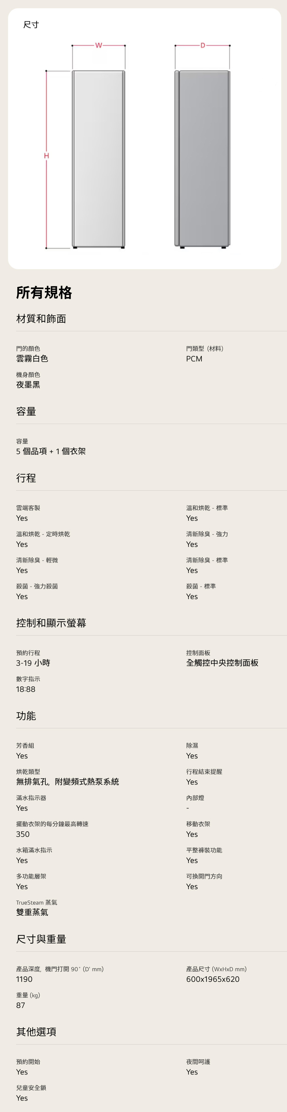 品名:LG Styler蒸氣電子衣櫥-雲霧白