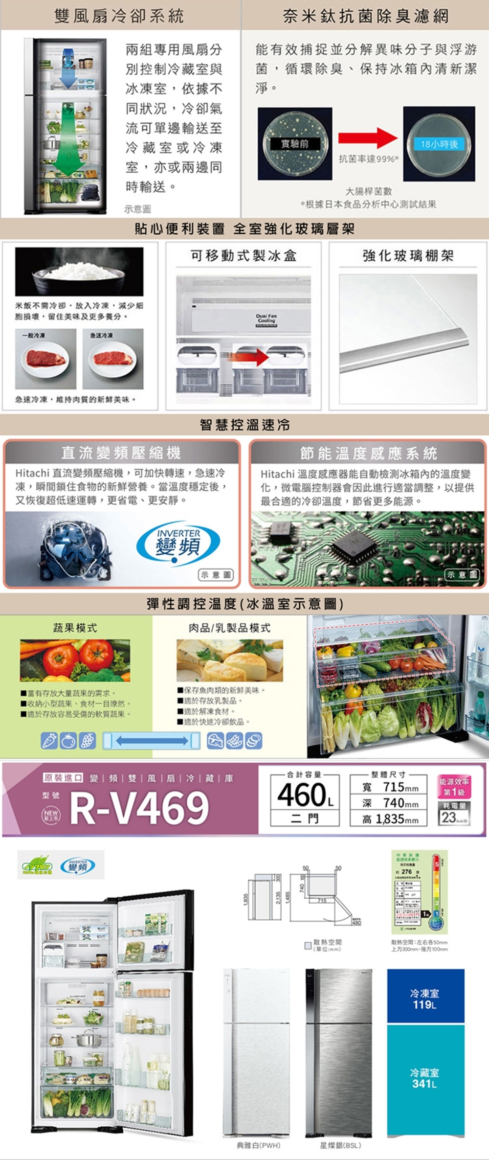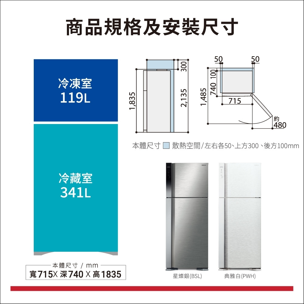 品名:HITACHI日立 變頻雙門右開冰箱-星燦銀 460公升