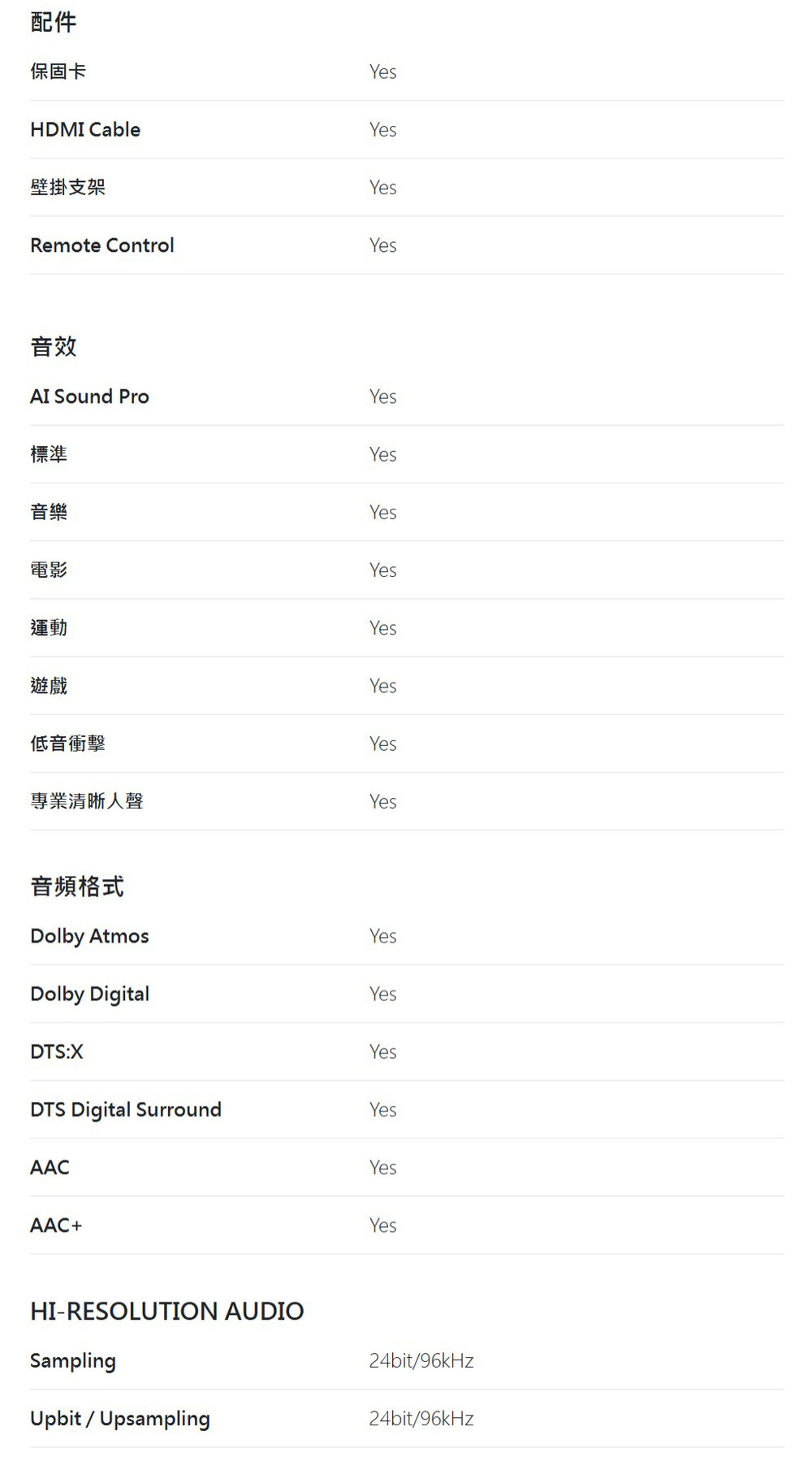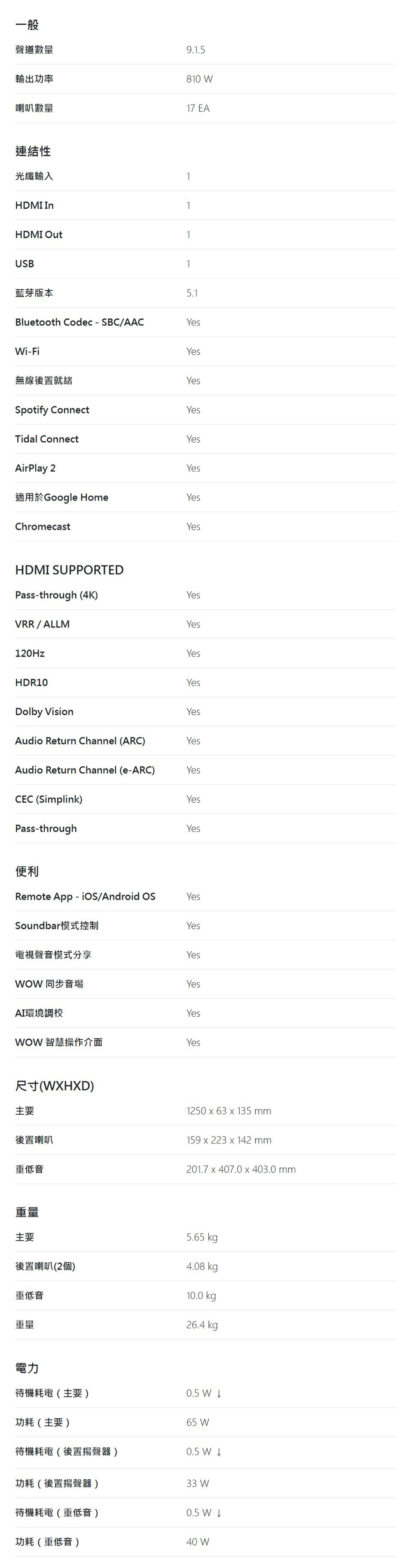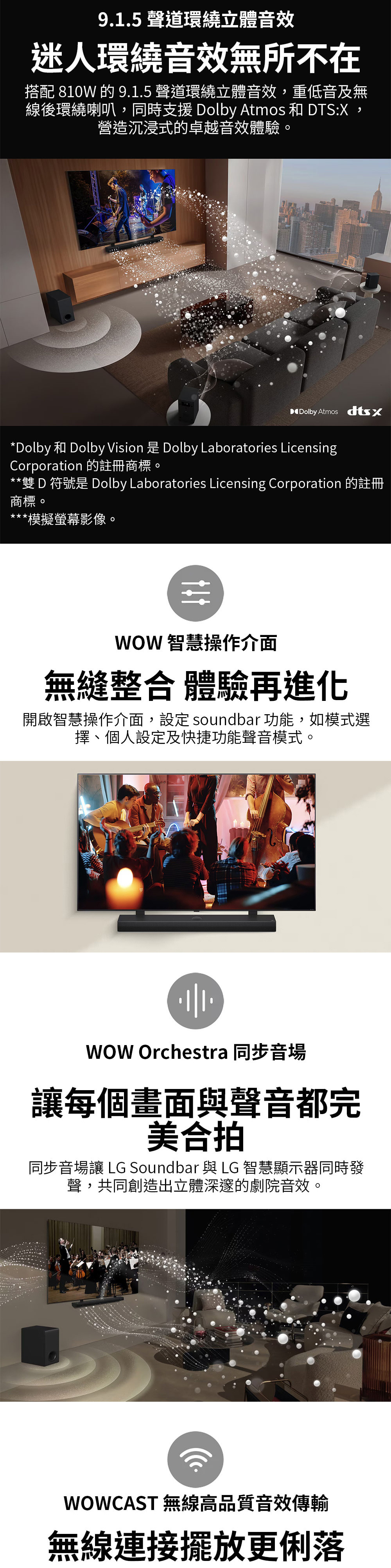 ●支援 WOWCAST 高品質無線傳輸,線材減少裝潢更俐落