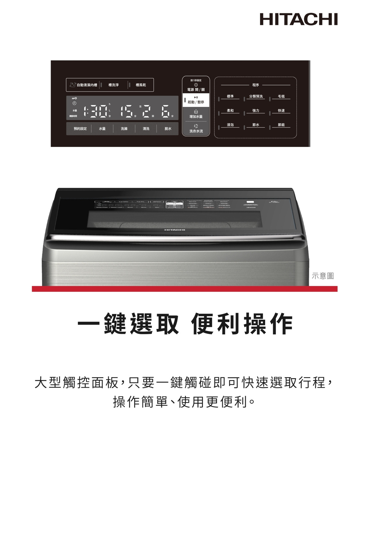 ●大型觸控面板 寛廣衣物投入口