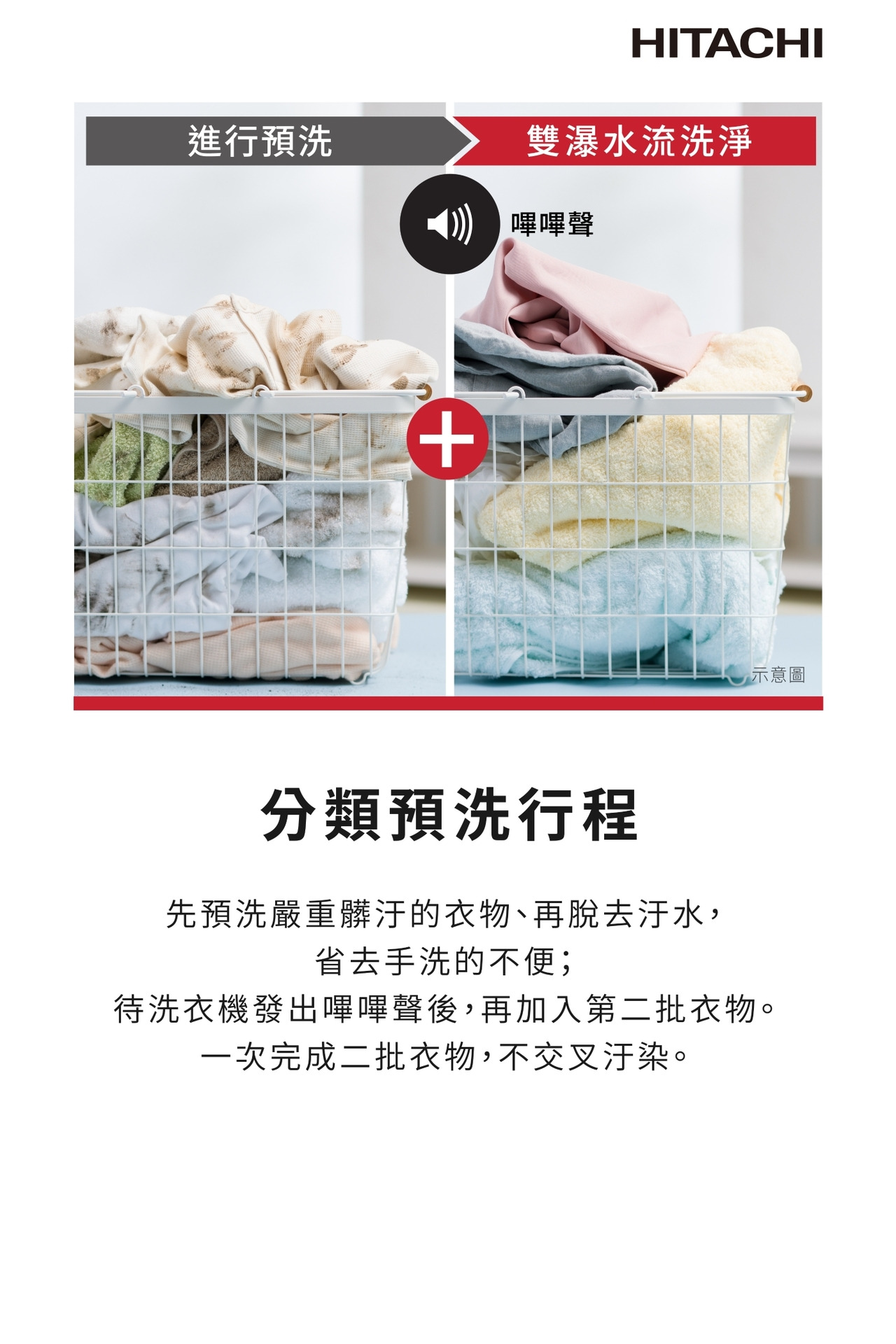 ●分類預洗 二批衣物1次洗淨