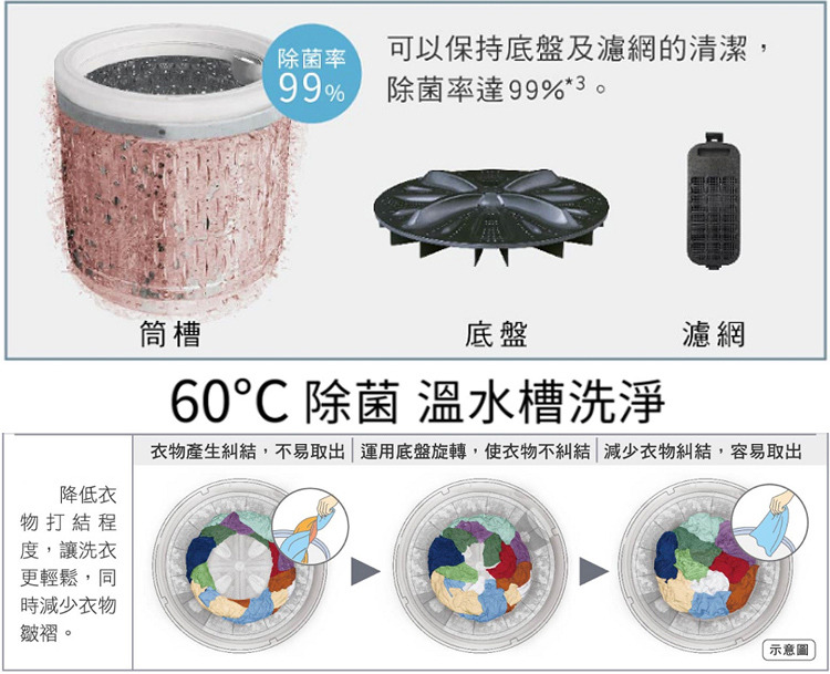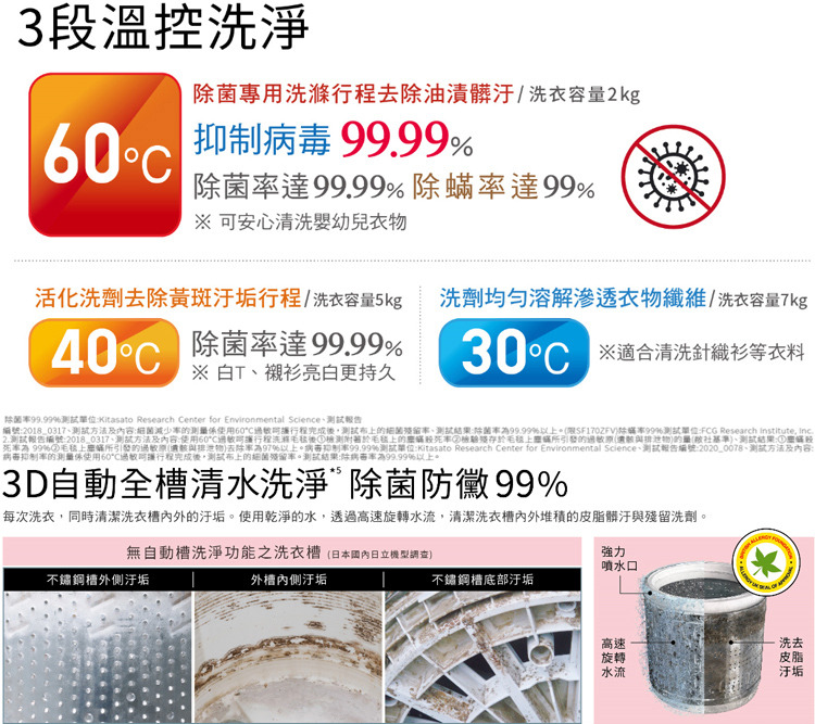 ●3段溫控洗淨 除菌抗蟎