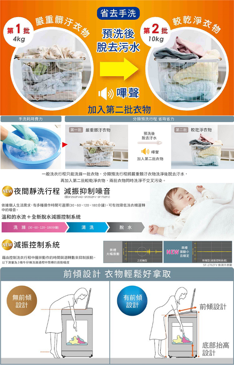 ●分類預洗 二批衣物1次洗淨