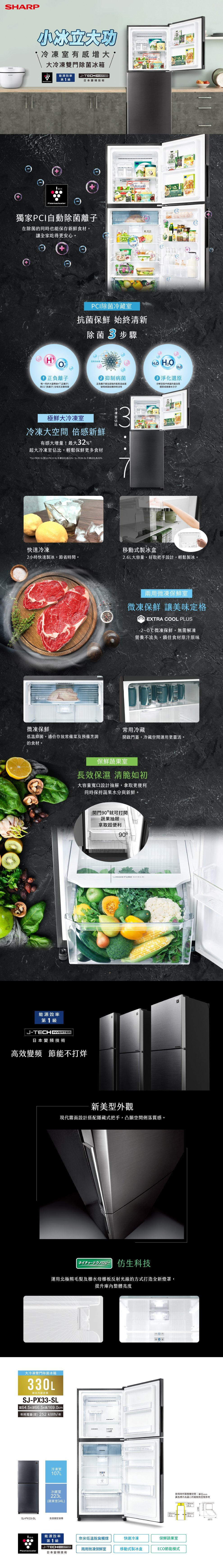 SHARP夏普 自動除菌大冷凍雙門右開變頻冰箱-曜岩灰 330公升|SJ-PX33-SL