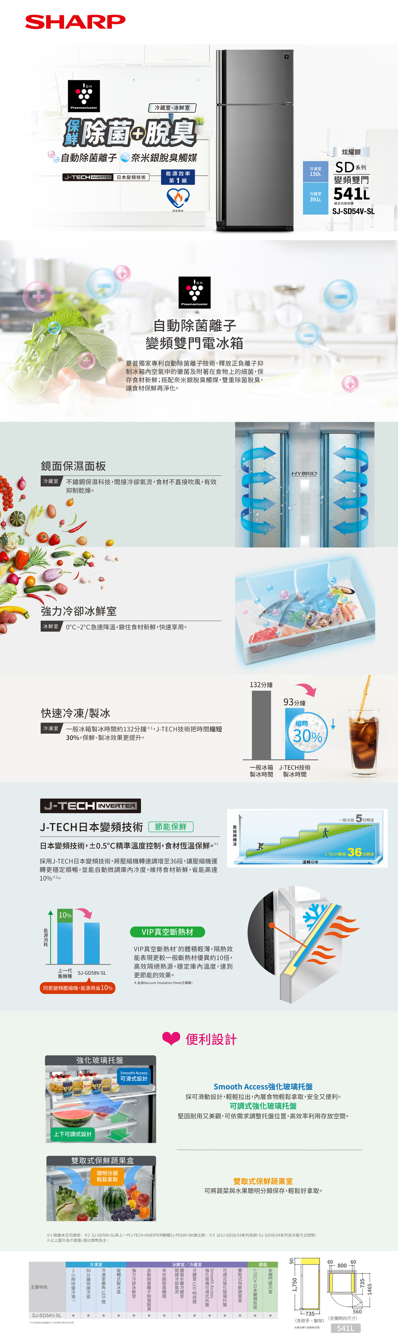 SHARP夏普 自動除菌智慧右開上下門變頻冰箱-炫耀銀 541公升| SJ-SD54V-SL