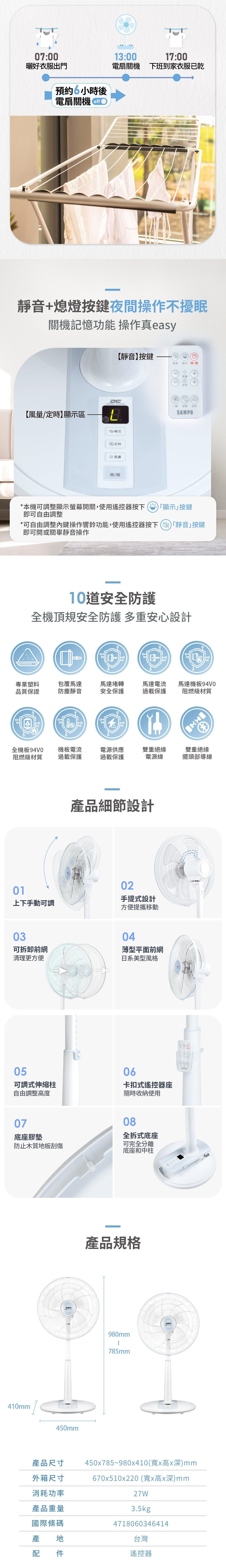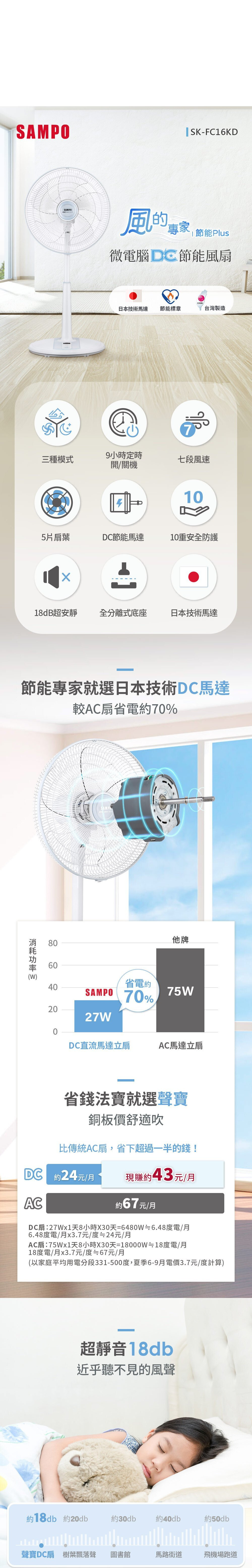 SAMPO聲寶 微電腦遙控DC直流馬達立扇16吋|SK-FC16KD