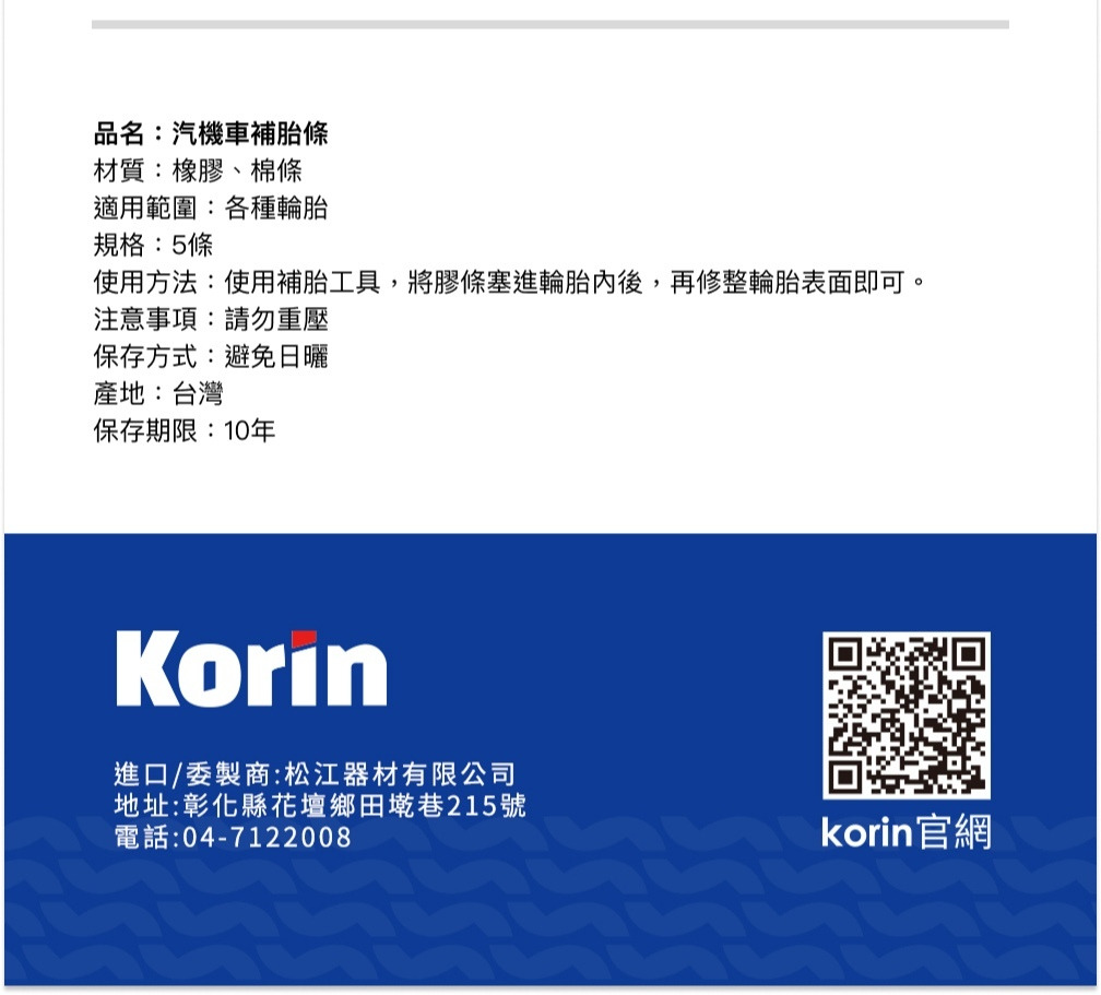 品名:汽機車補胎條