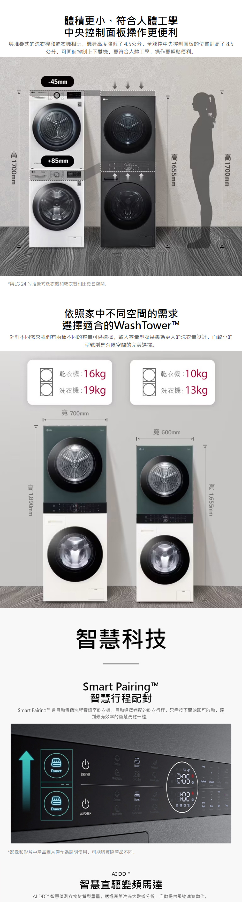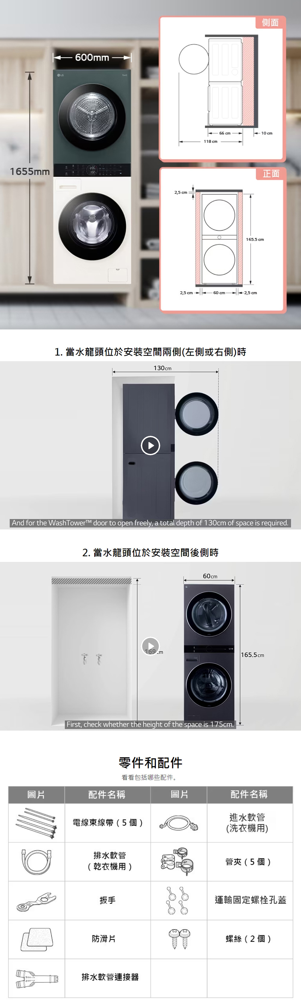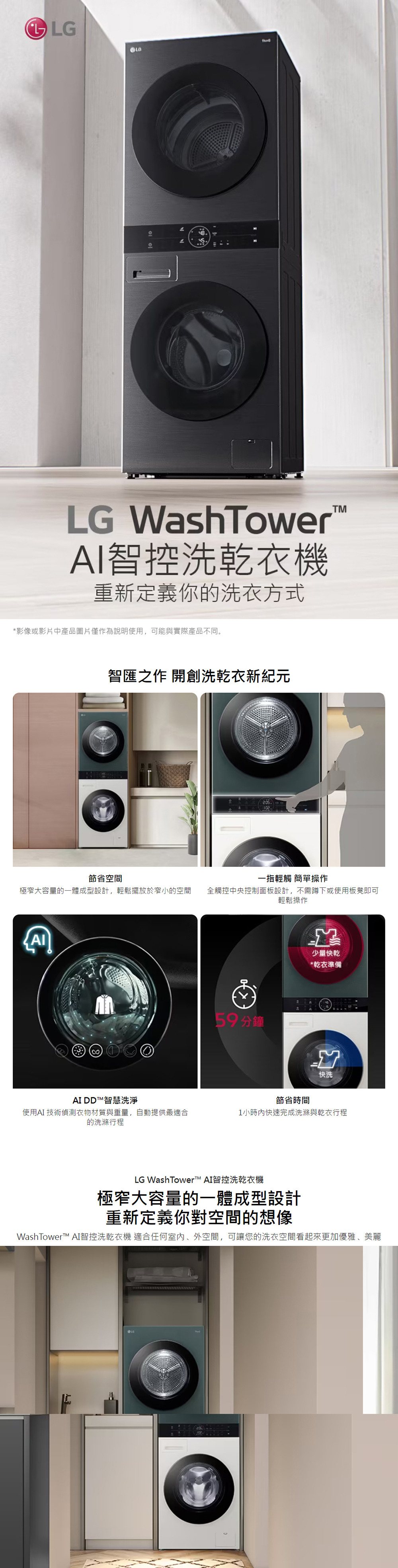 品名:LG WashTower™ AI智控洗乾衣機 石墨綠+雪霧白 洗衣13公斤+乾衣10公斤
