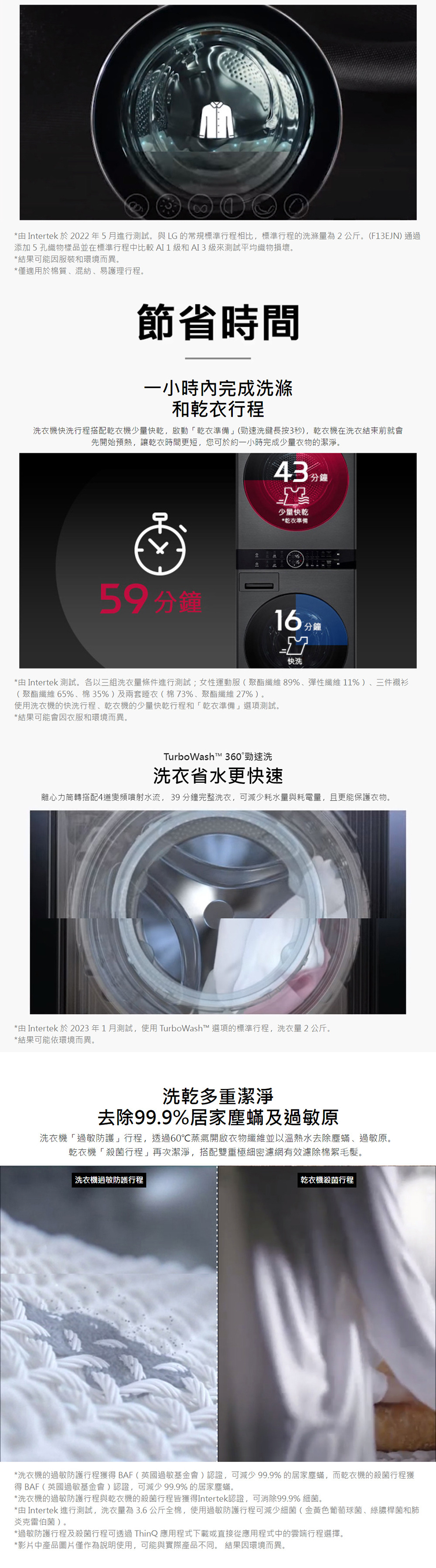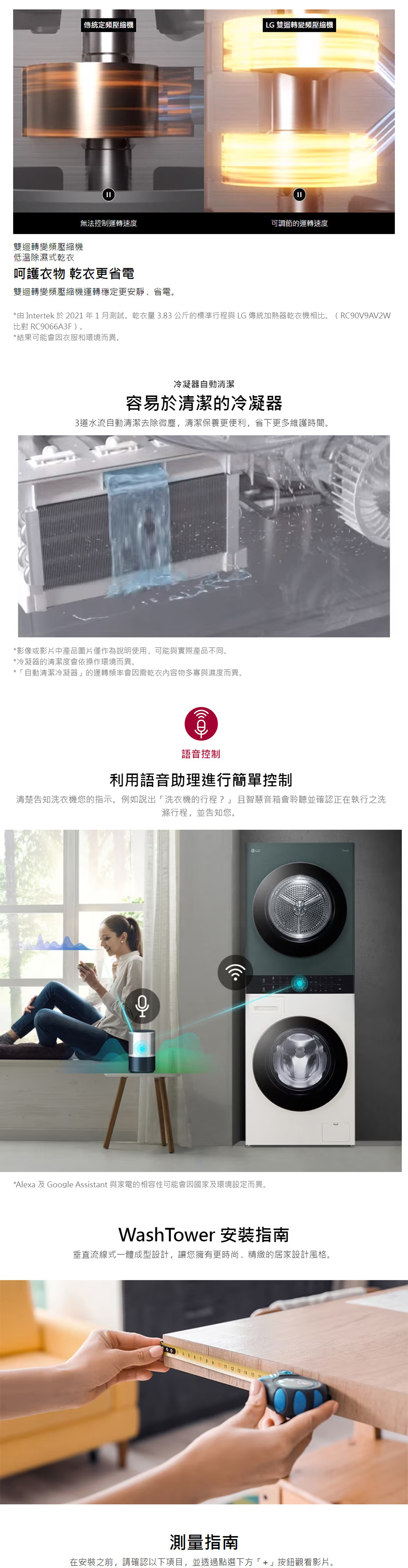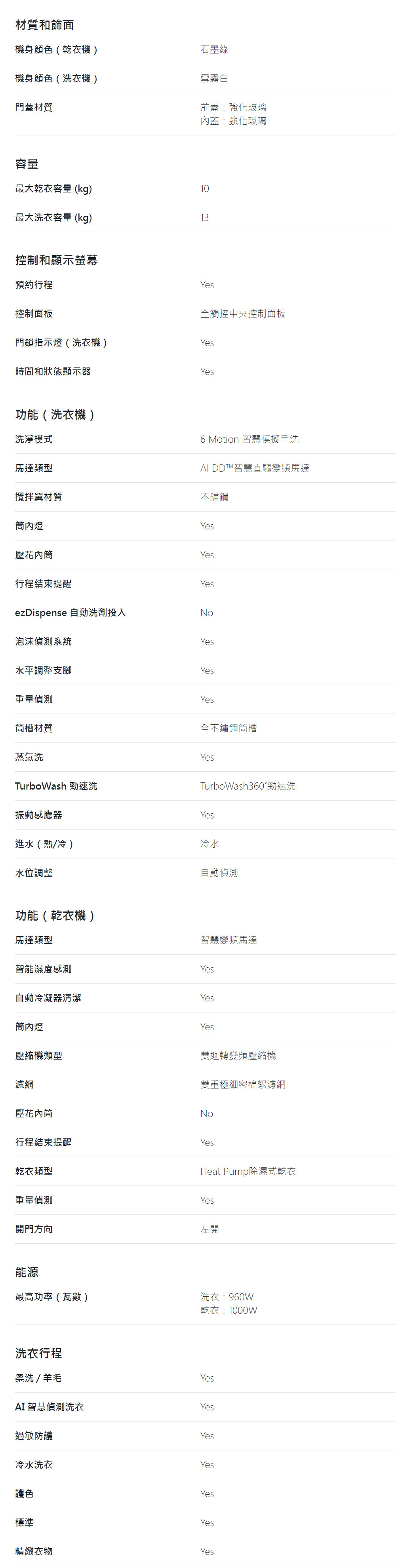 品名:LG WashTower™ AI智控洗乾衣機 石墨綠+雪霧白 洗衣13公斤+乾衣10公斤