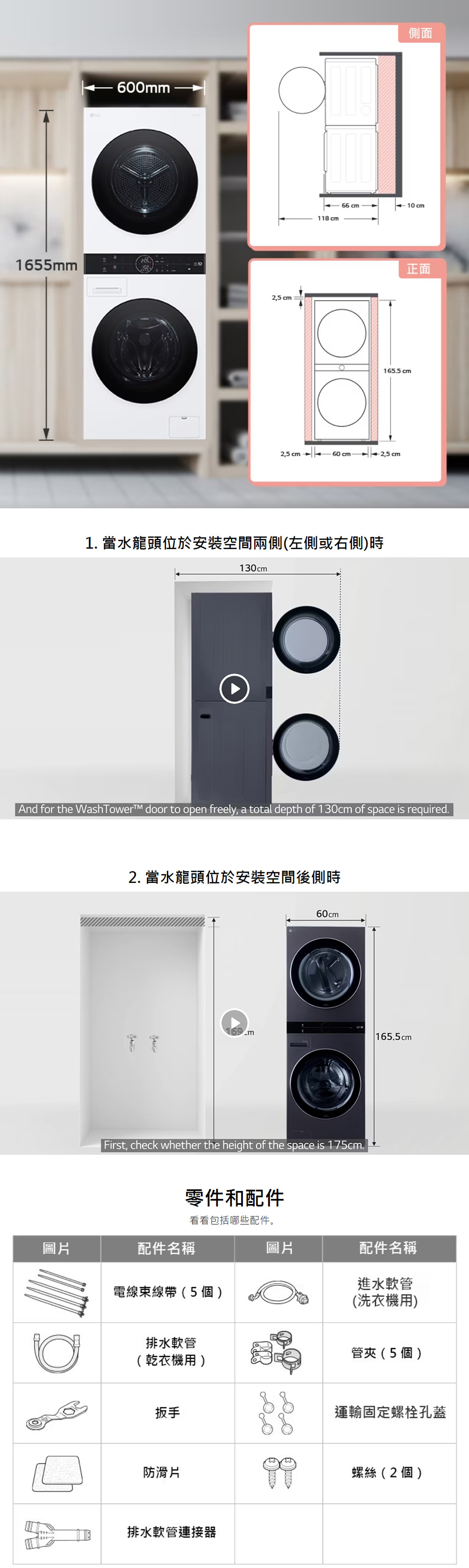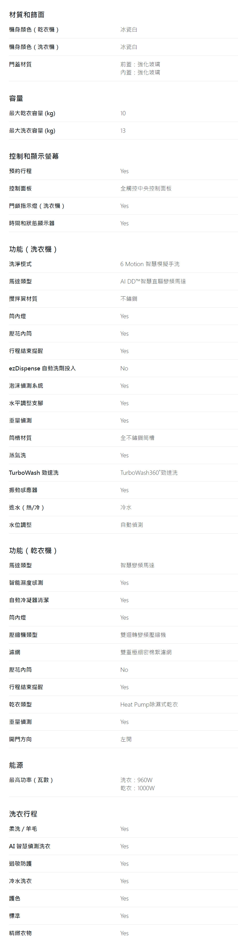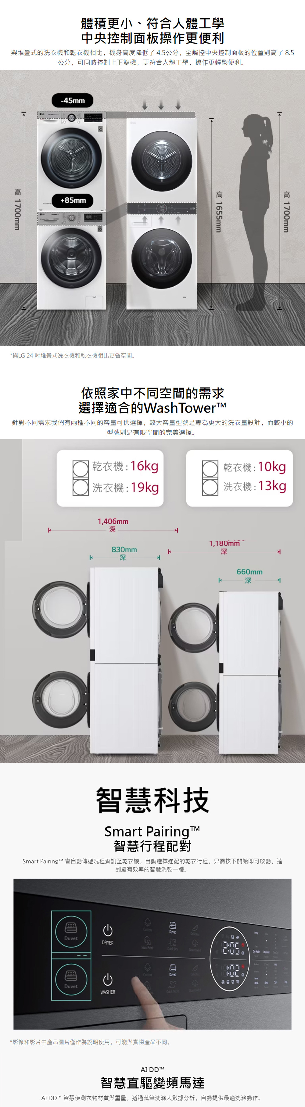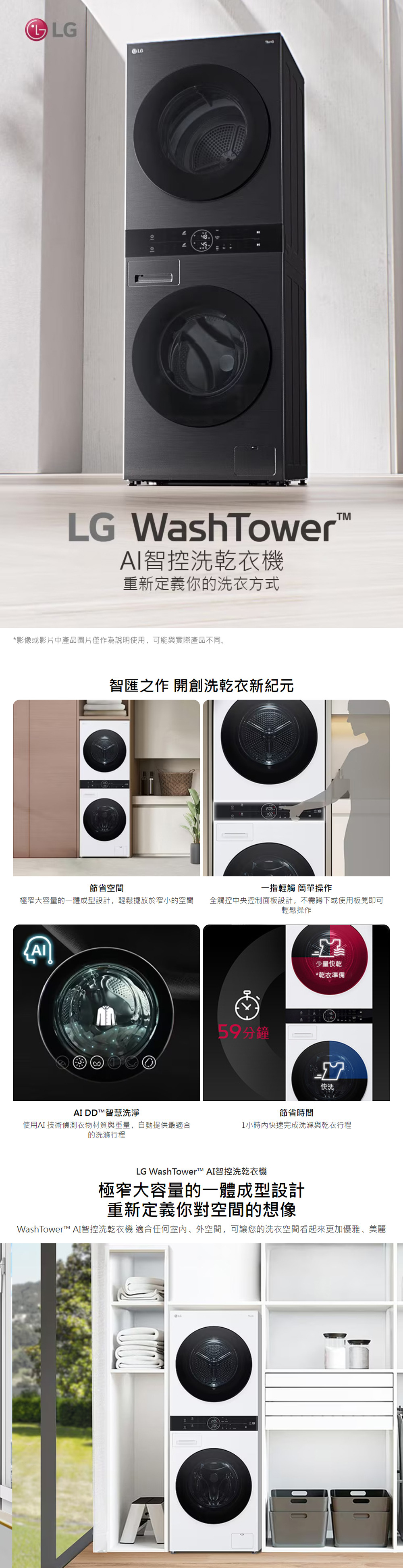 品名:LG WashTower™ AI智控洗乾衣機 冰瓷白 洗衣13公斤+乾衣10公斤
